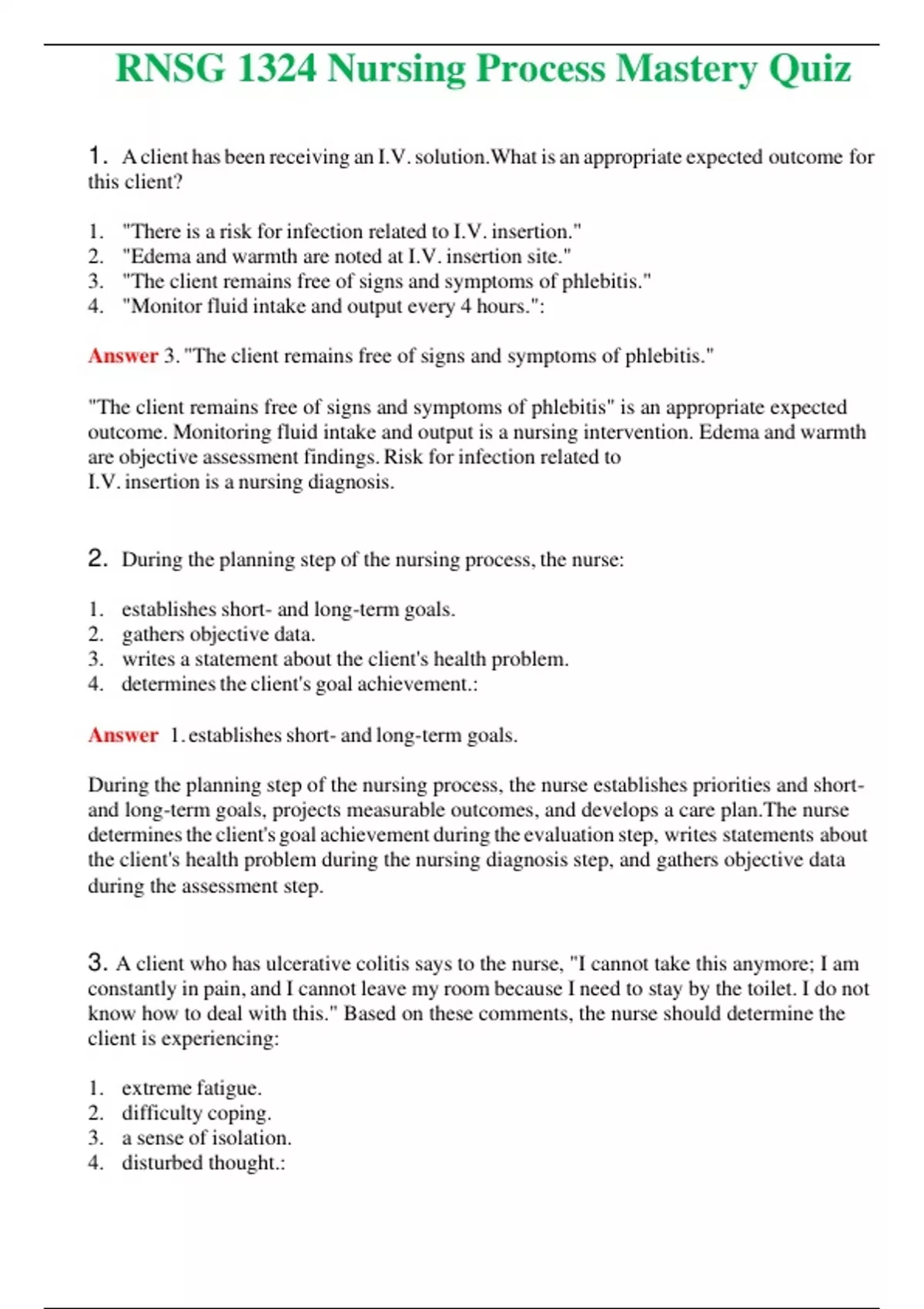 2024 BUNDLE RNSG 1324 Mastery Quiz - Nursing Process , Nutrition TEST BANK Questions and Answers Included 100% Correct