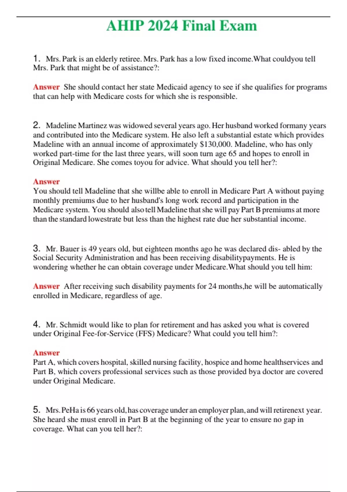 2024 AHIP Test 1 Actual Questions and Verified Answers ( Included ) 100% Correct