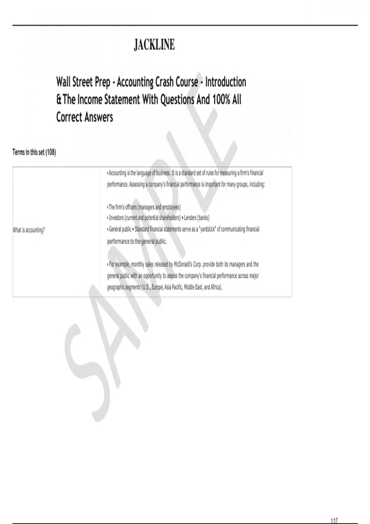 Wall Street Prep: Accounting Crash Course With Questions And 100% All Sure Answers
