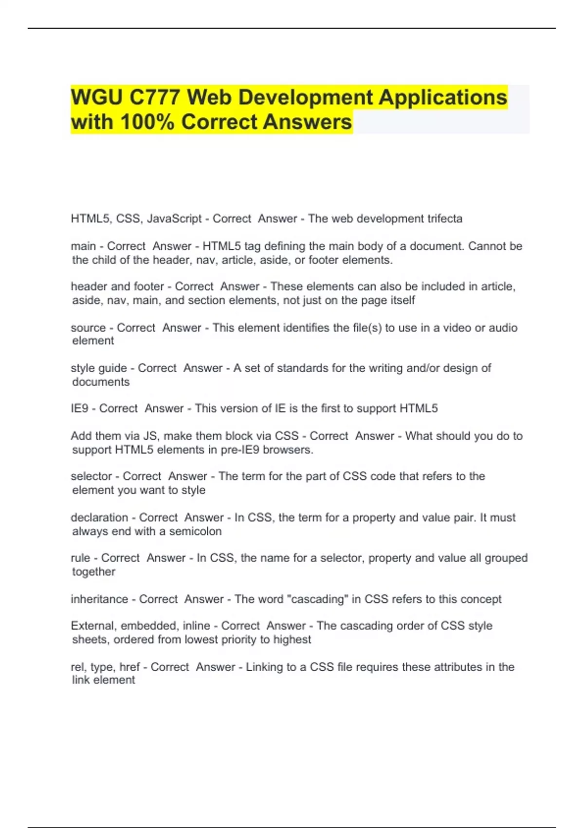 Package deal for WGU C777 Web Development Applications Exam with 100% Correct Answers 2024 Guaranteed Success!!