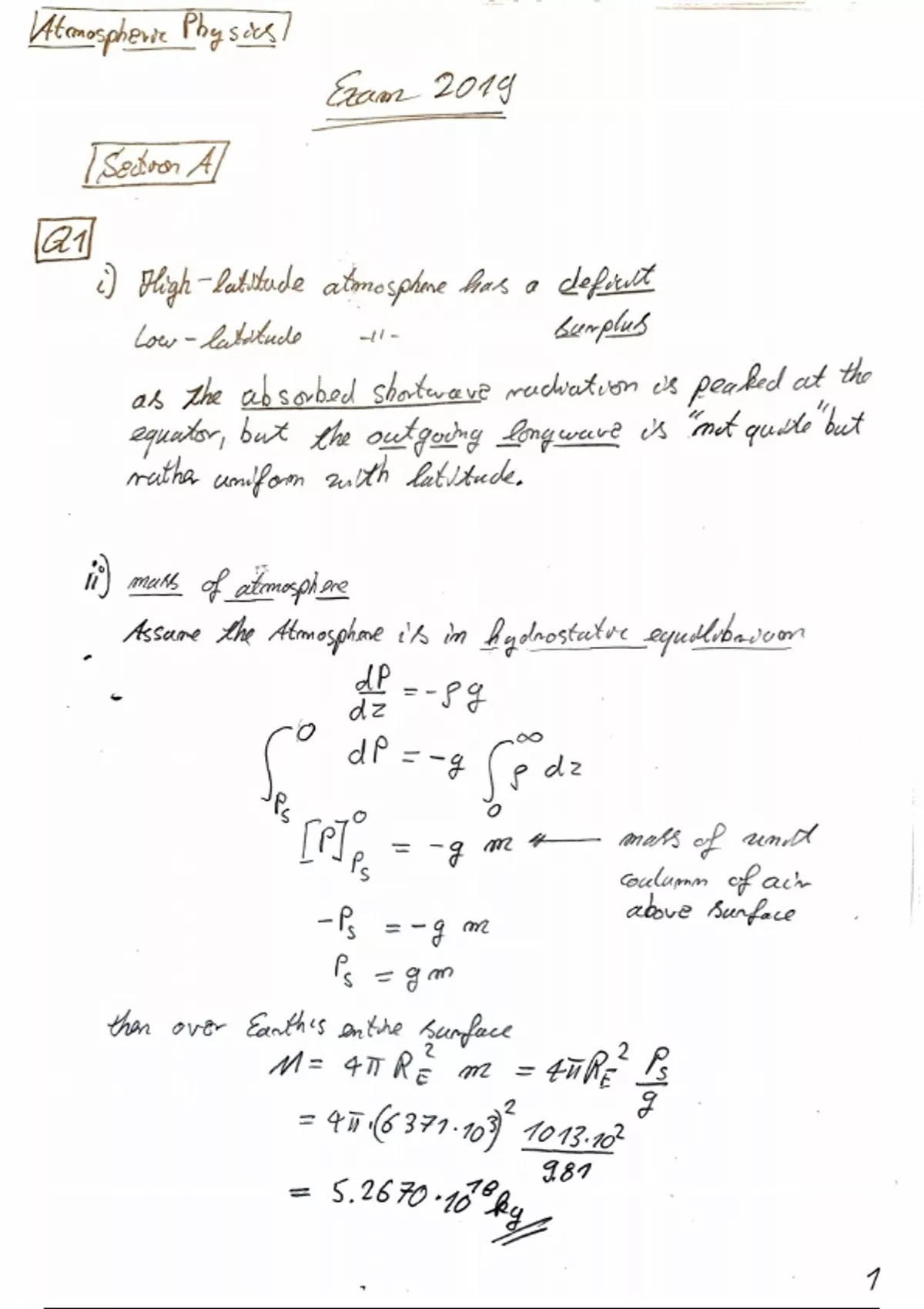 Atmospheric Physics 2015, , 2021 Mock Exams - Full Solutions