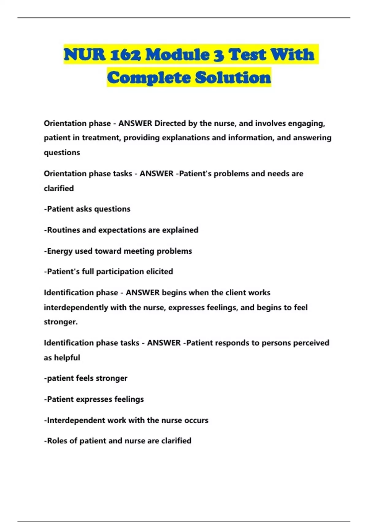 NUR 162 Module 3 Test With Complete Solution