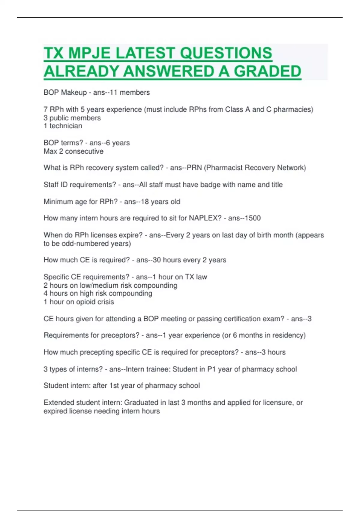 TEXAS MPJE LATEST QUESTIONS ALREADY ANSWERED A GRADED