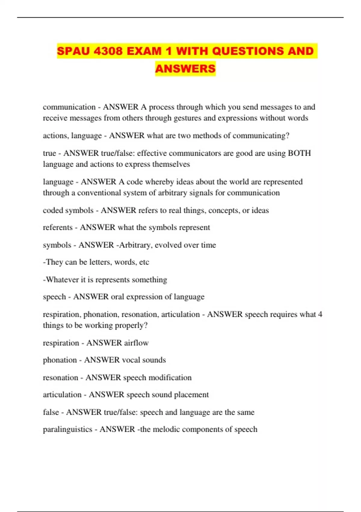 SPAU 4308 EXAM 1 WITH QUESTIONS AND ANSWERS