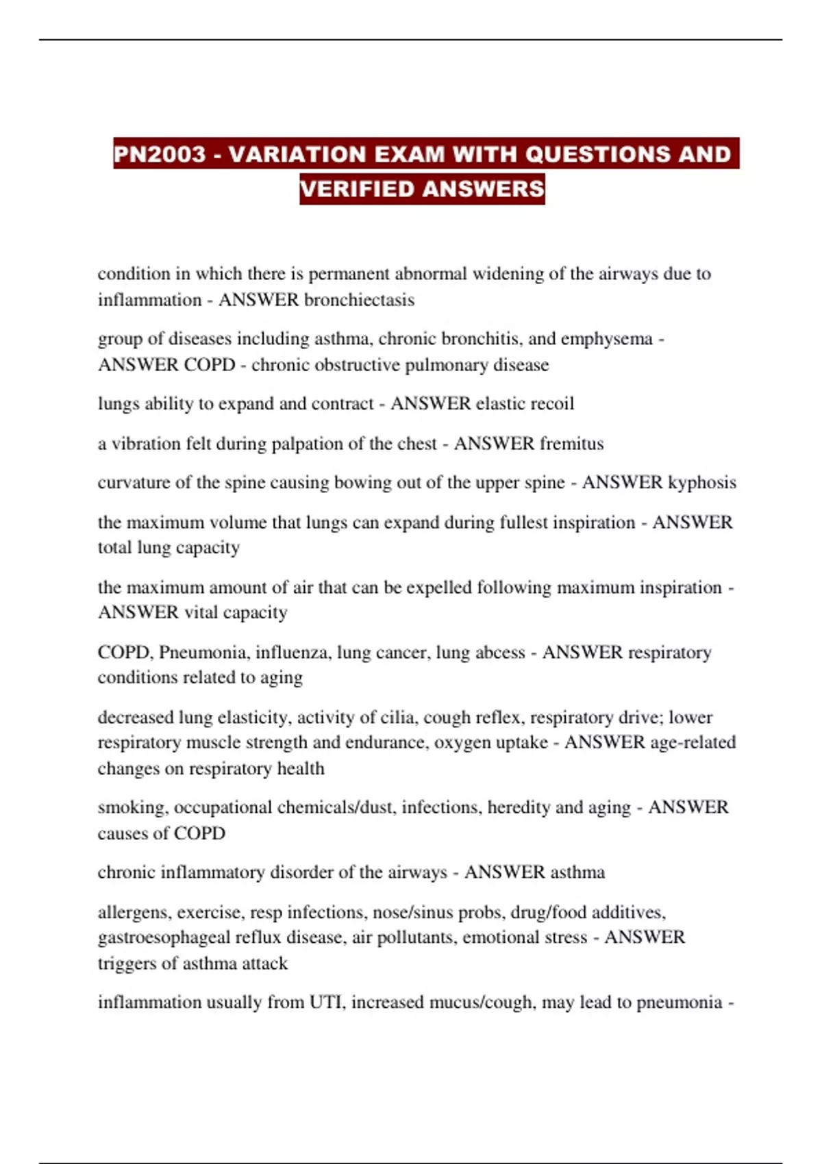 PN2003 - VARIATION EXAM WITH QUESTIONS AND VERIFIED ANSWERS