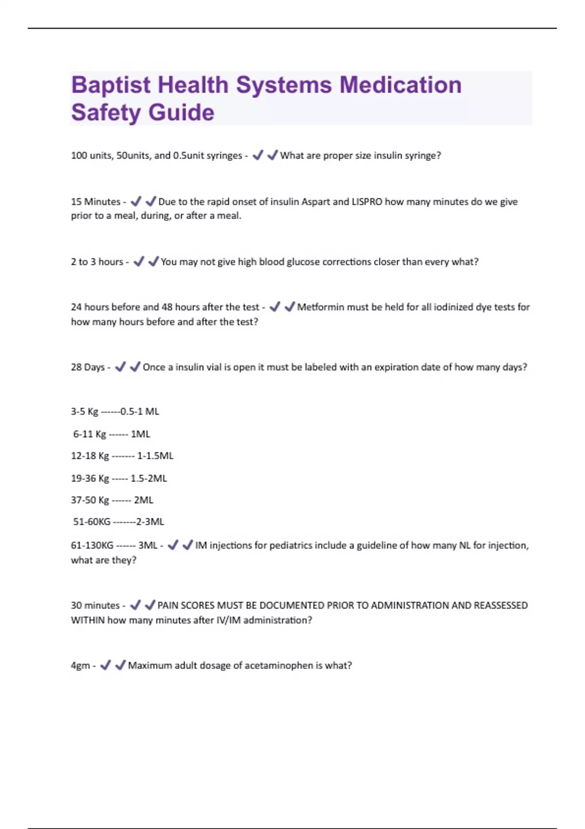 Baptist Health Systems Medication Safety Guide Questions and Answers 100% Verified