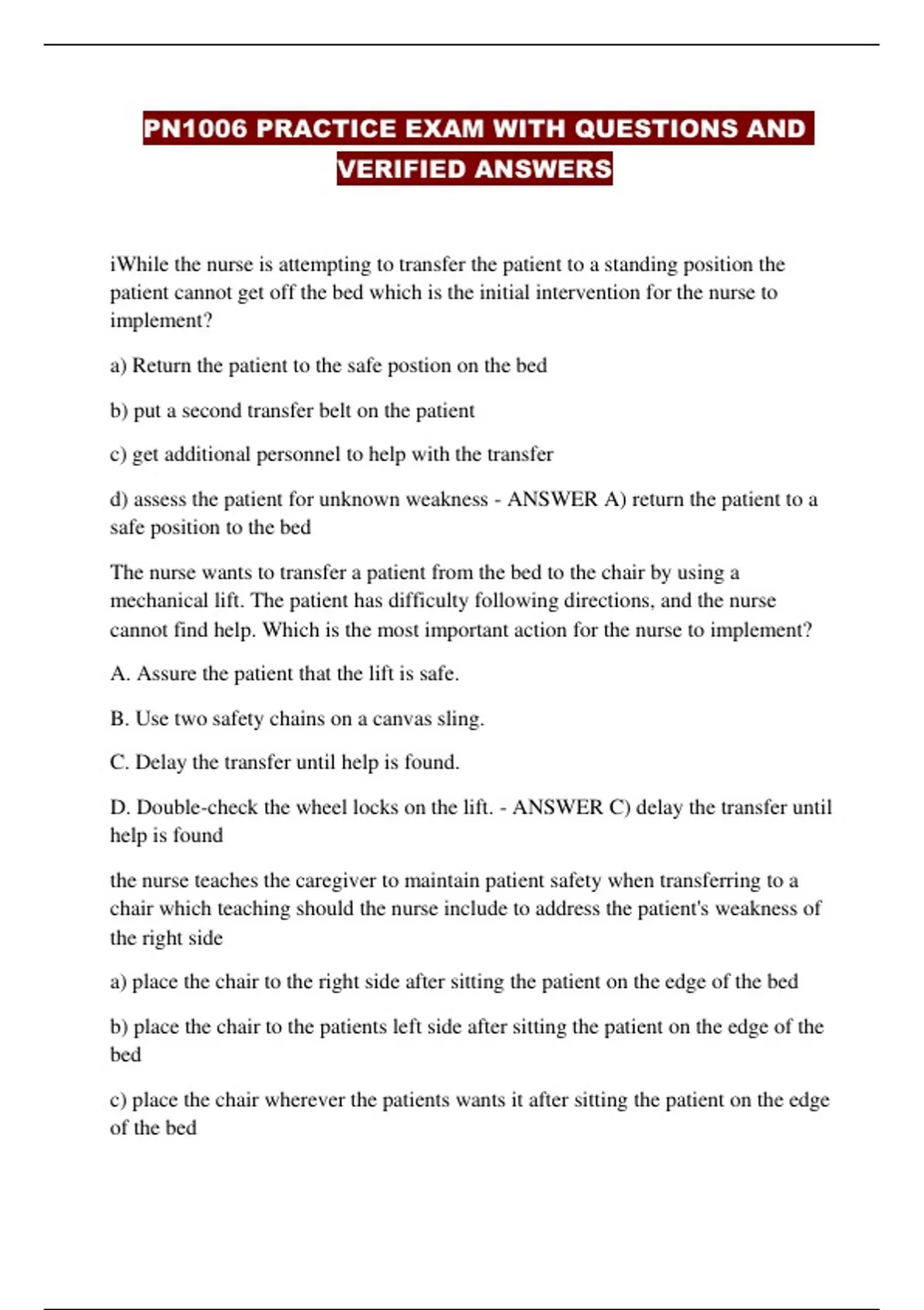 PN1006 PRACTICE EXAM WITH QUESTIONS AND VERIFIED ANSWERS