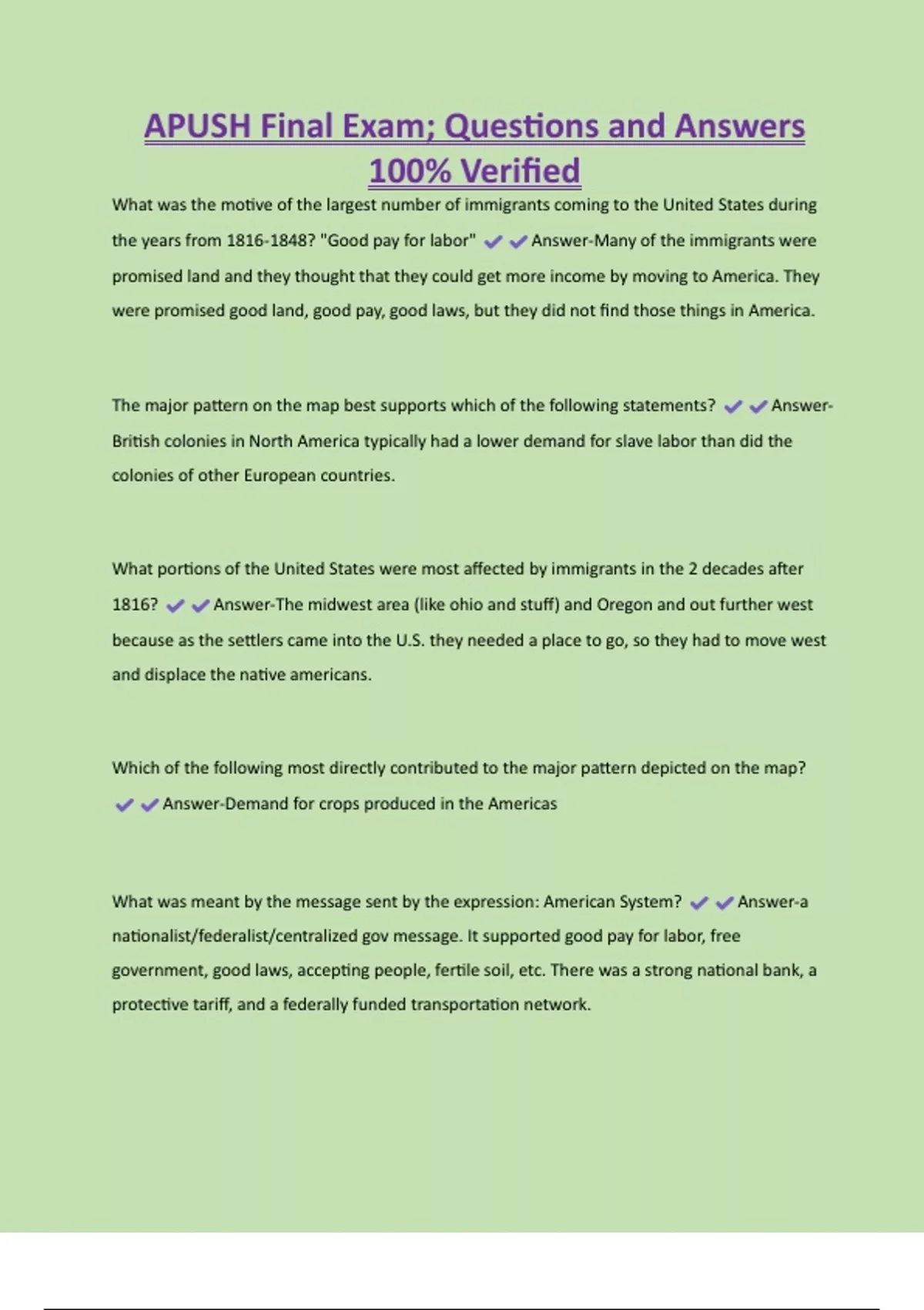 FULL PACKAGE::-APUSH BUNDLED EXAMS WITH COMPLETE SOLUTIONS
