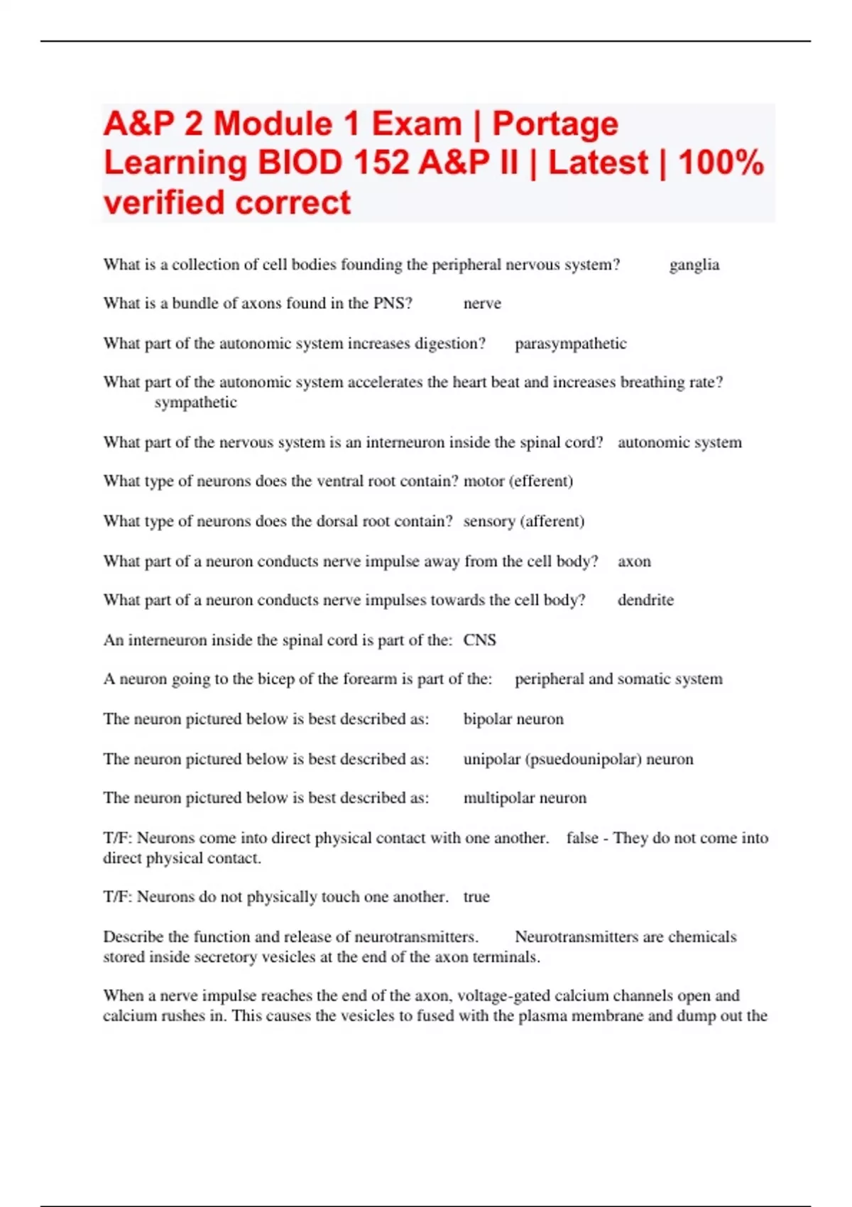 Exam (elaborations) BIOD 152 Anatomy Exam 2 Questions and answers | 100% verified correct 2 Exam (elaborations) Biod 152 exam 2 Questions and answers | Updated 2024/25 3 Exam (elaborations) BIOD 152 Exam 2 Questions and answers | Newest RATED A+ 4 Exam (elaborations) BIOD 152 Exam 4 Questions and answers NEWEST 100% VERIFIED CORRECT RATED A+ 5