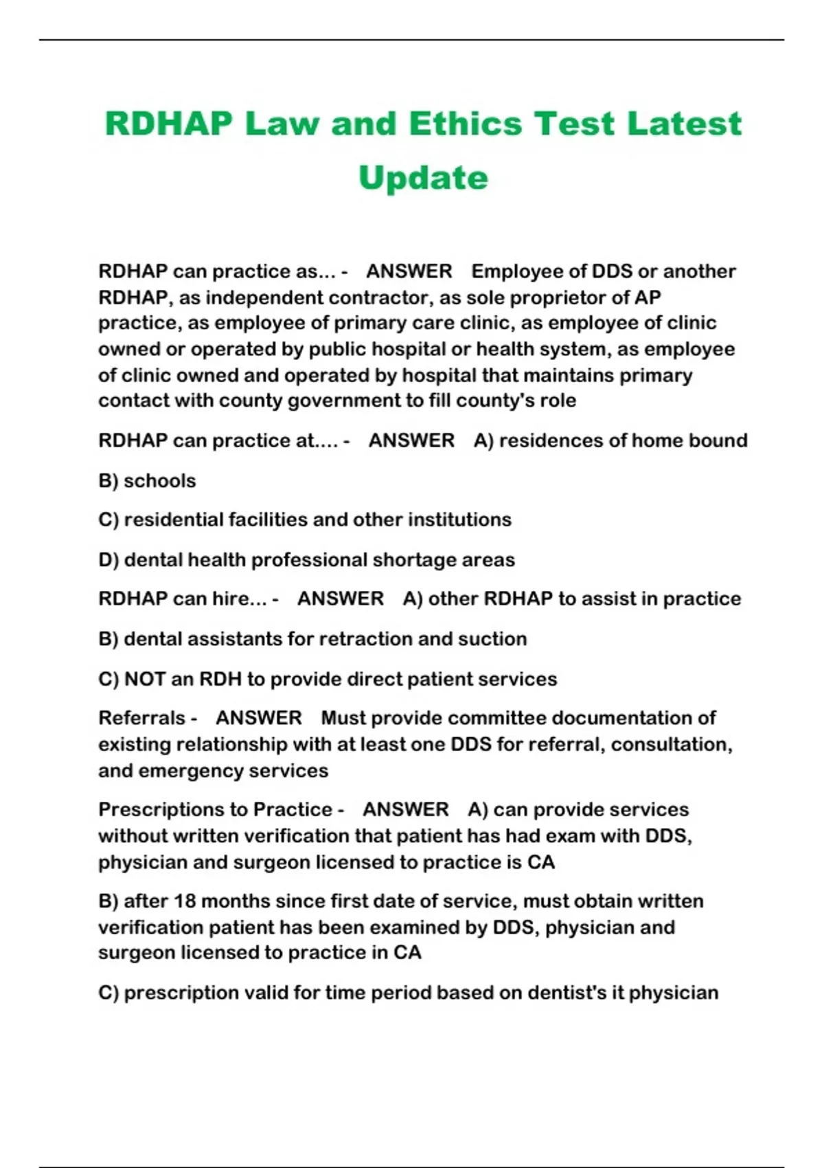 RDHAP LAW AND ETHICS EXAM LATEST UPDATE