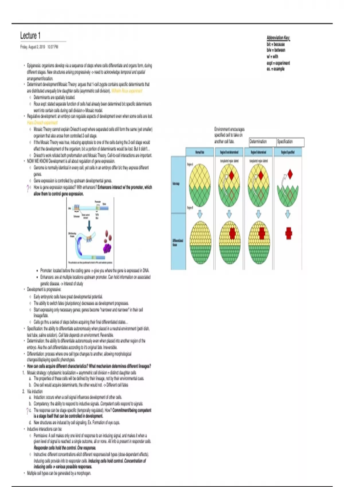Collection of lecture notes covering lectures 1-7 of the Developmental Biology course (code BioD104) at University of California, Irvine. All documents come with colored diagrams useful in visualizing difficult concepts. Made by a biology student who took said course over a 5-week summer session.