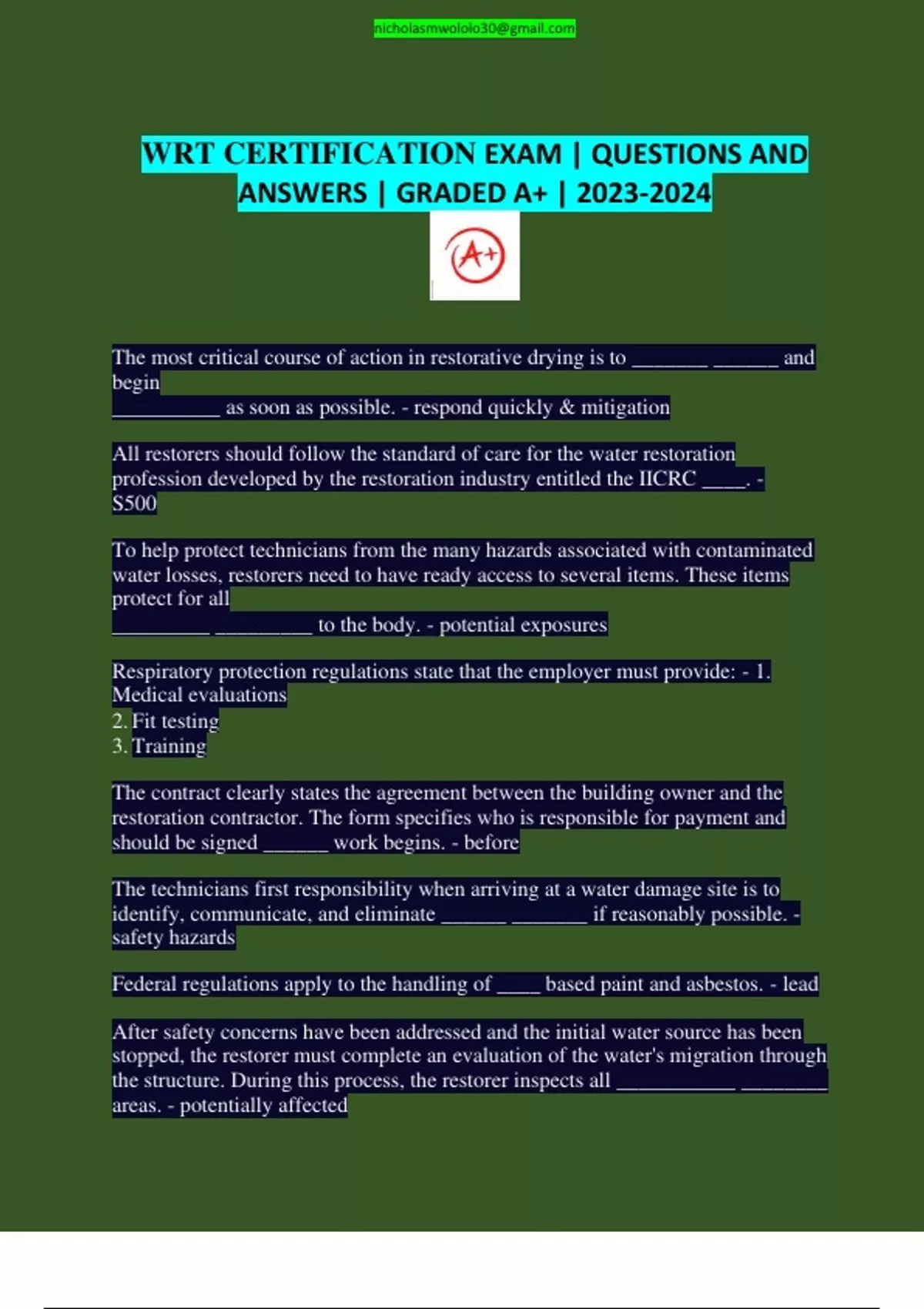 WRT CERTIFICATION EXAM/ WRT Exam | QUESTIONS AND ANSWERS | GRADED A+