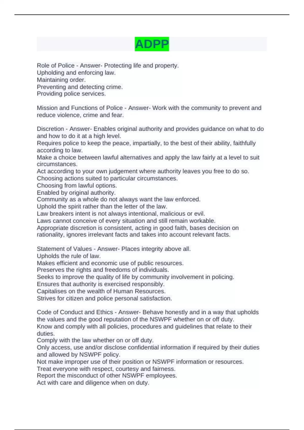 Everything ADPP QUESTIONS AND ANSWERS