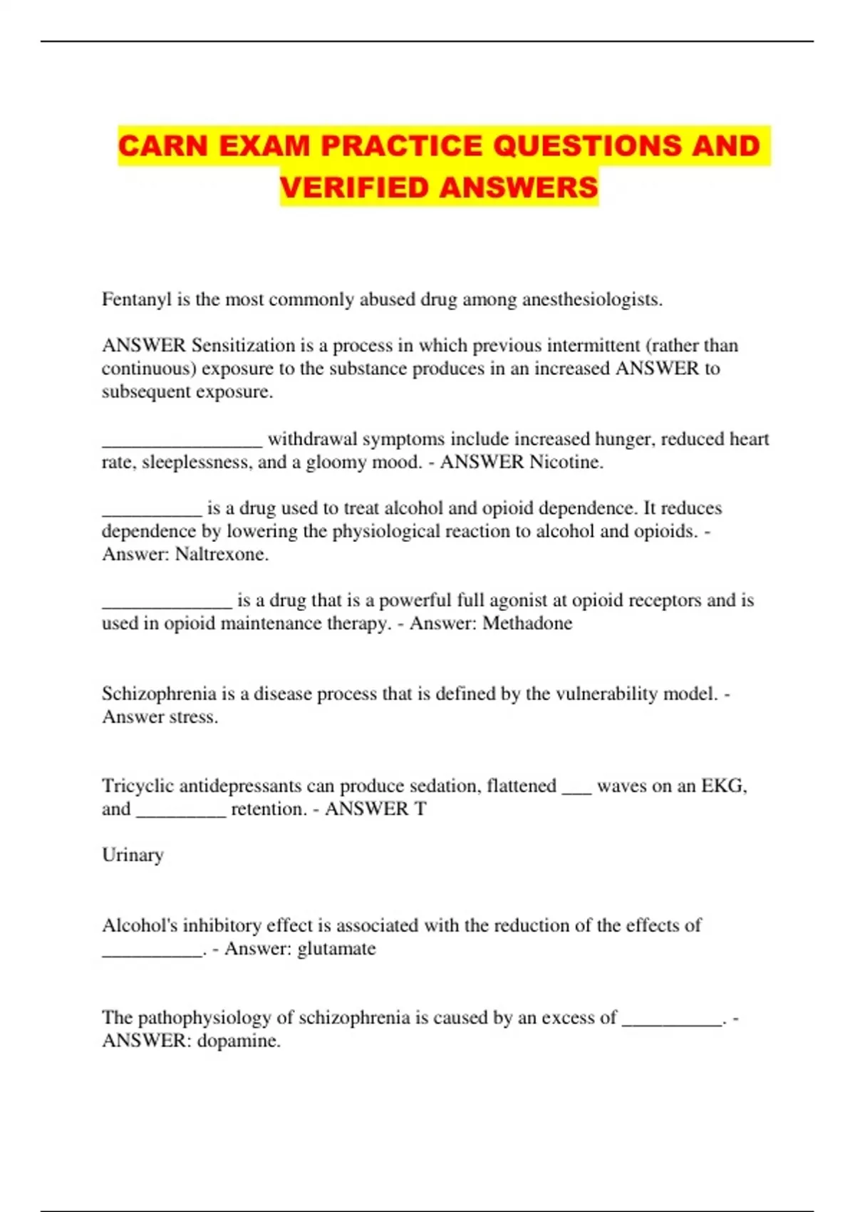 CARN BUNDLED EXAMS WITH QUESTIONS AND VERIFIED ANSWERS...