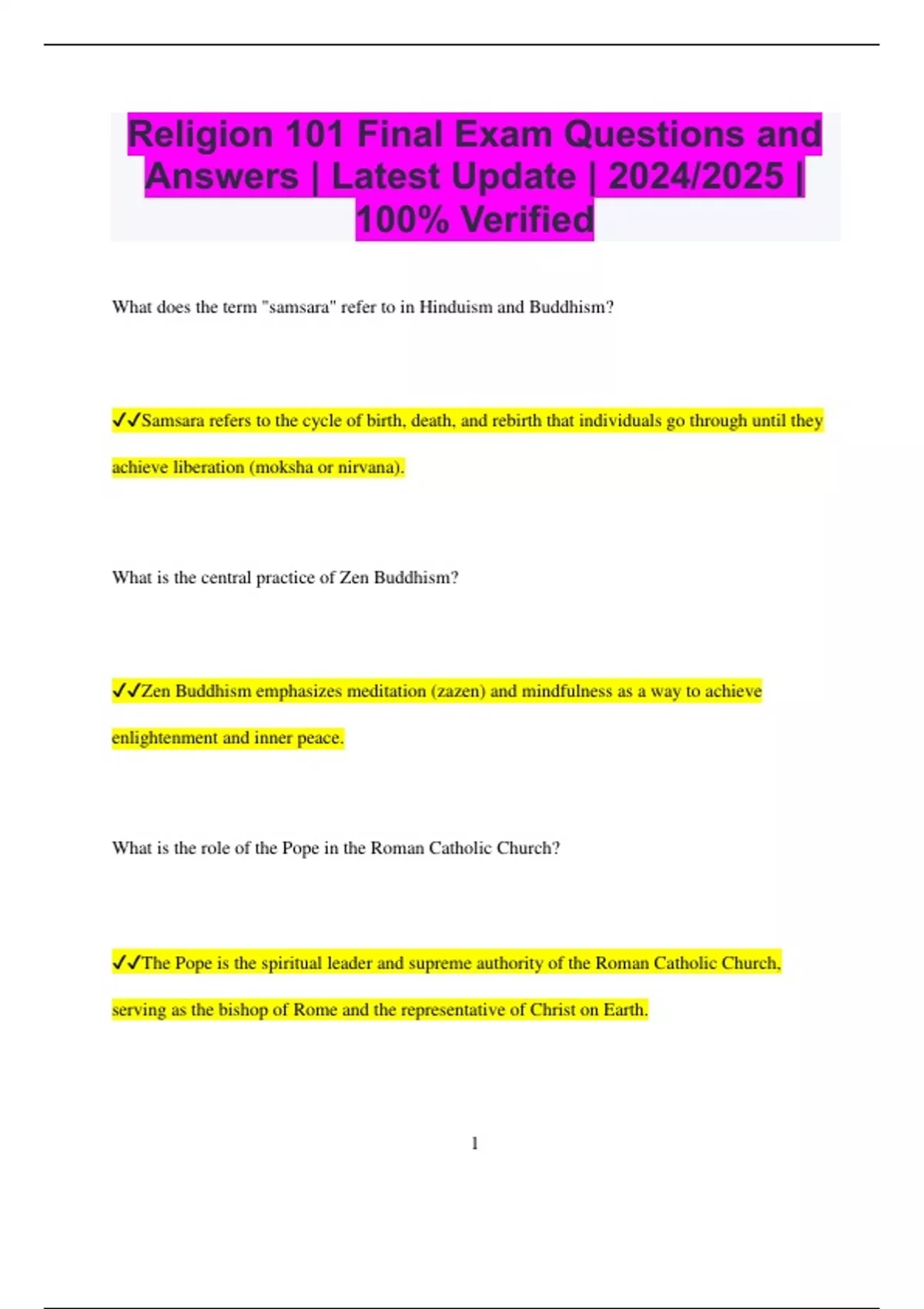 Straighterline - REL101 Bundled Exams Questions and Answers Latest Versions 100% Pass