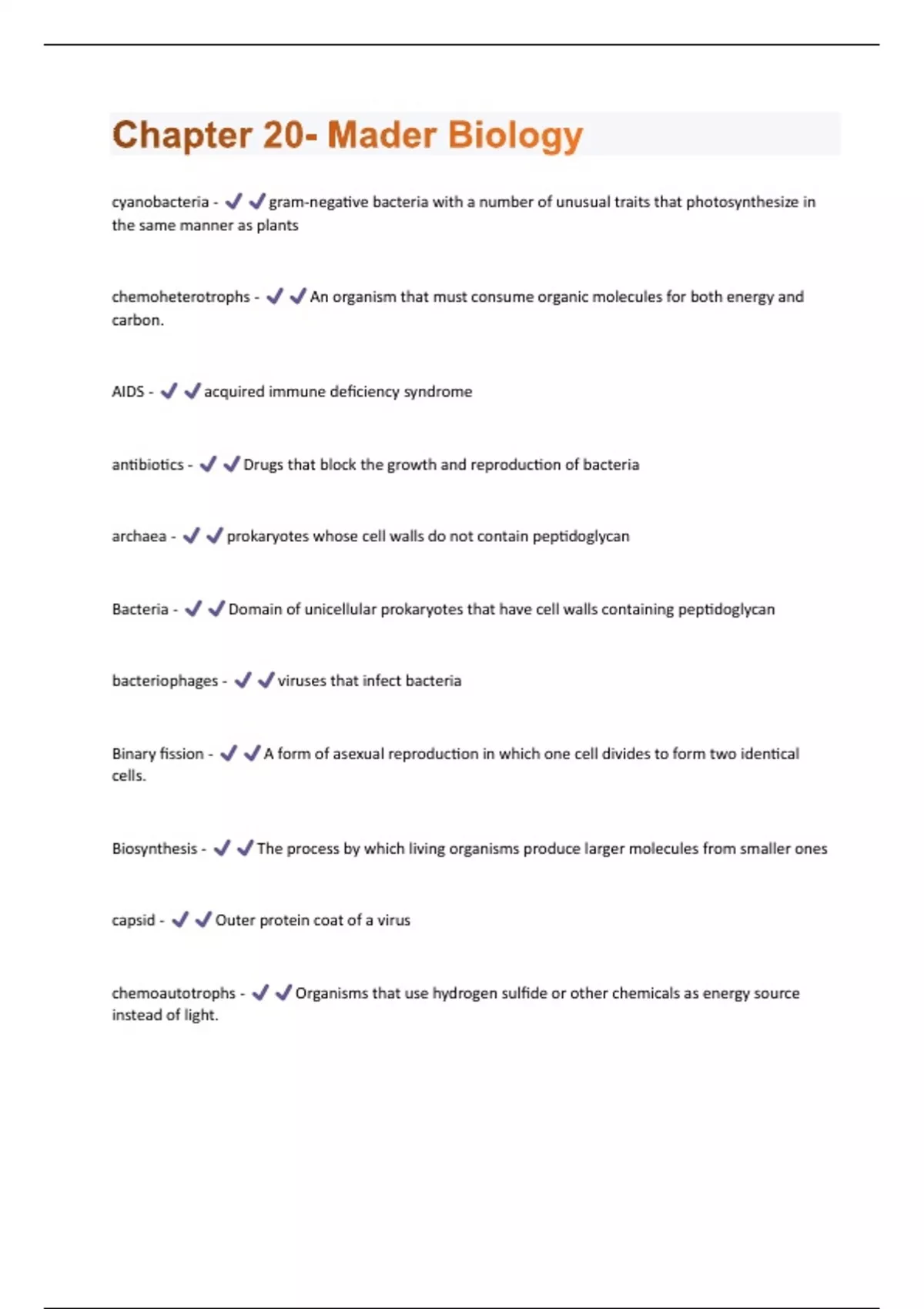 Chapter 20- Mader Biology (Questions & Answers) Rated 100%