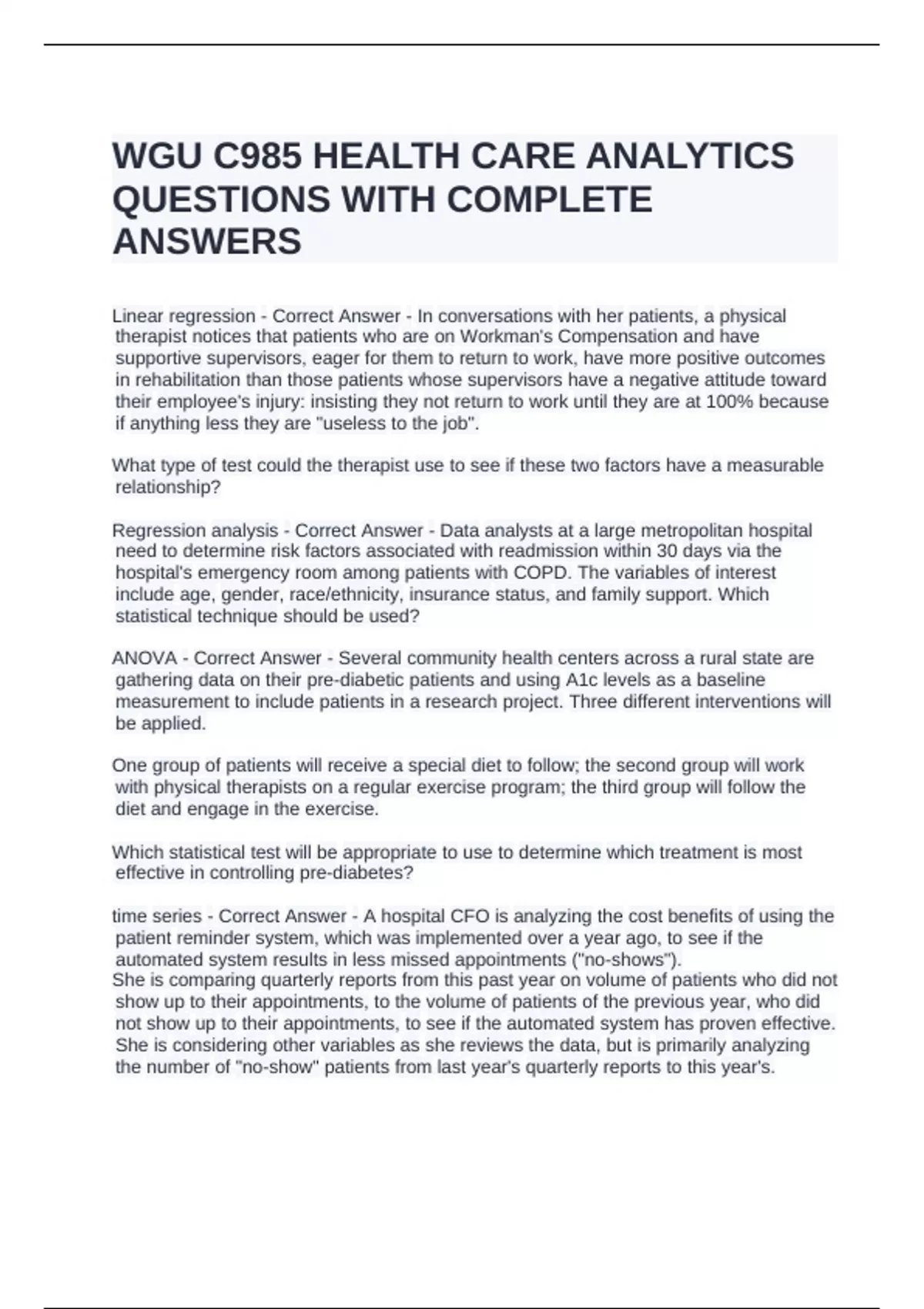 WGU C985 Health Care Analytics exam bundle questions and answers