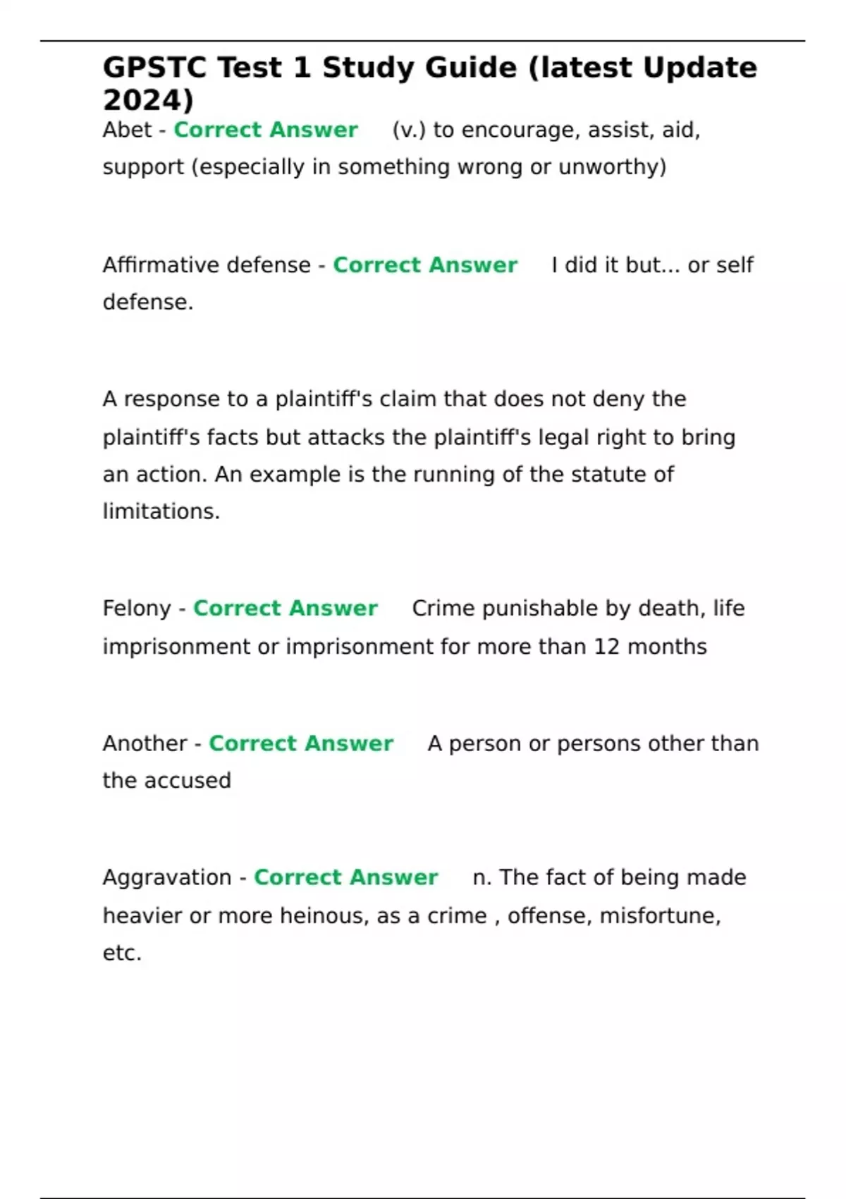GPSTC EVOC Exam Questions with Answers (Latest 2024) 2 Exam (elaborations) GPSTC Exam 1- GA Criminal Law Questions with Answers (latest 2024) 3 Exam (elaborations) GPSTC Exam 2 Questions and Answers (Latest Update 2024) 4 CASE GPSTC Test 1 Questions and Answers (Latest Update 2024) Verified Answers 5 SUMMARY GPSTC Test 1 Study Guide (latest Upd