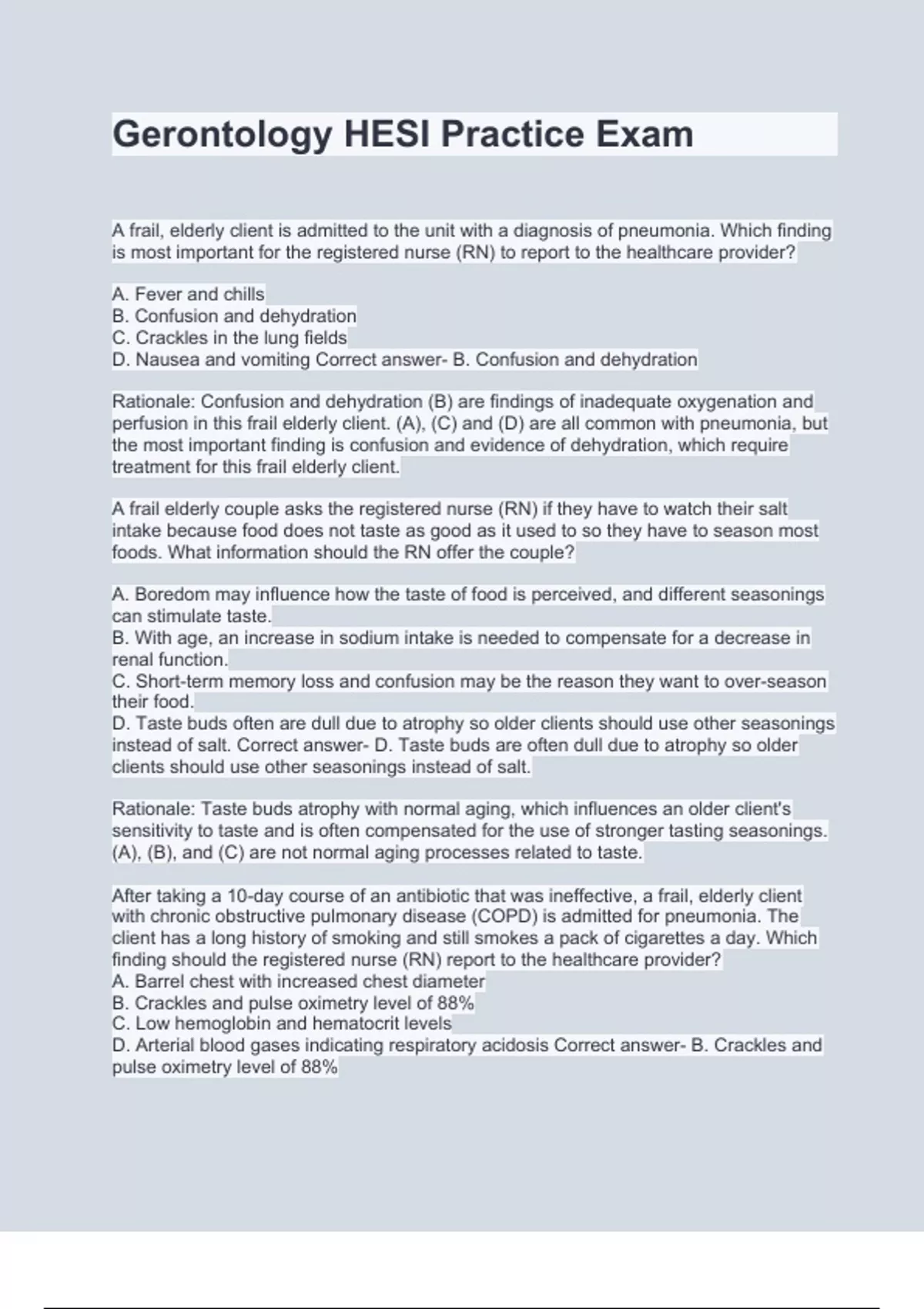 PACKAGE DEAL FOR; ATI GERONTOLOGY & Gerontology HESI Practice Exams STUDY BUNDLE