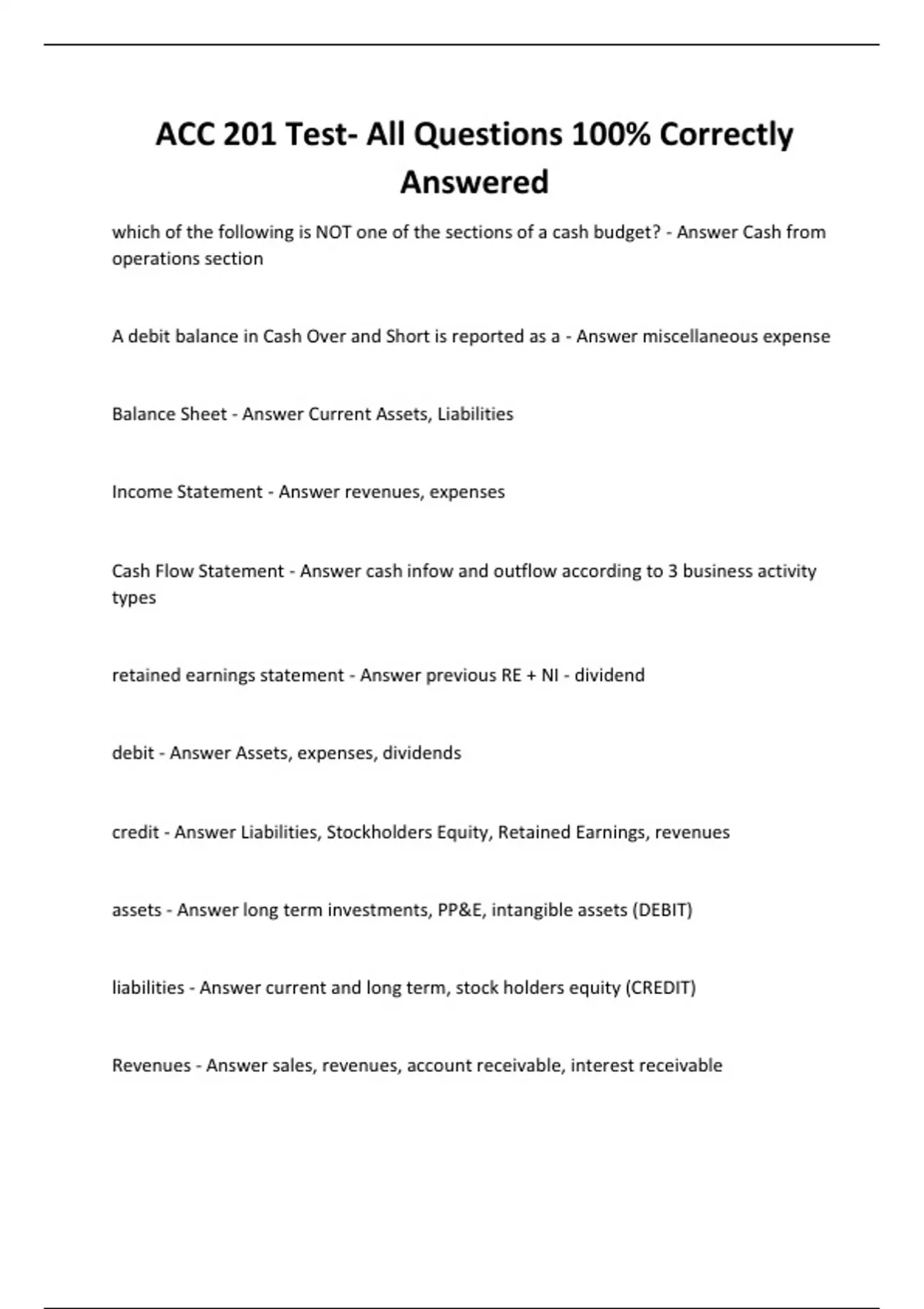 ACC 201 Exam Study Guide Questions with 100% Correct Verified Answers