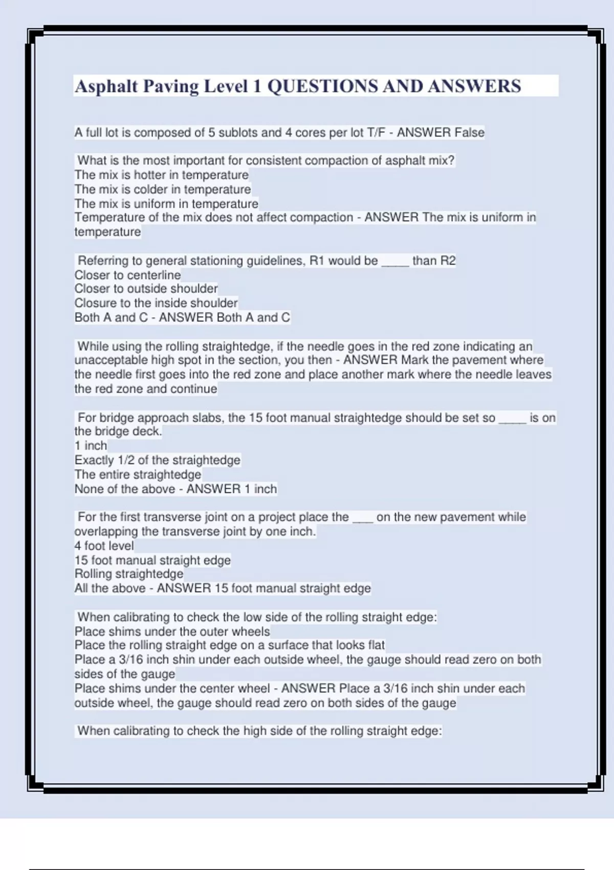 Asphalt paving level 1 & 2.questions and answers verified 100% correctly