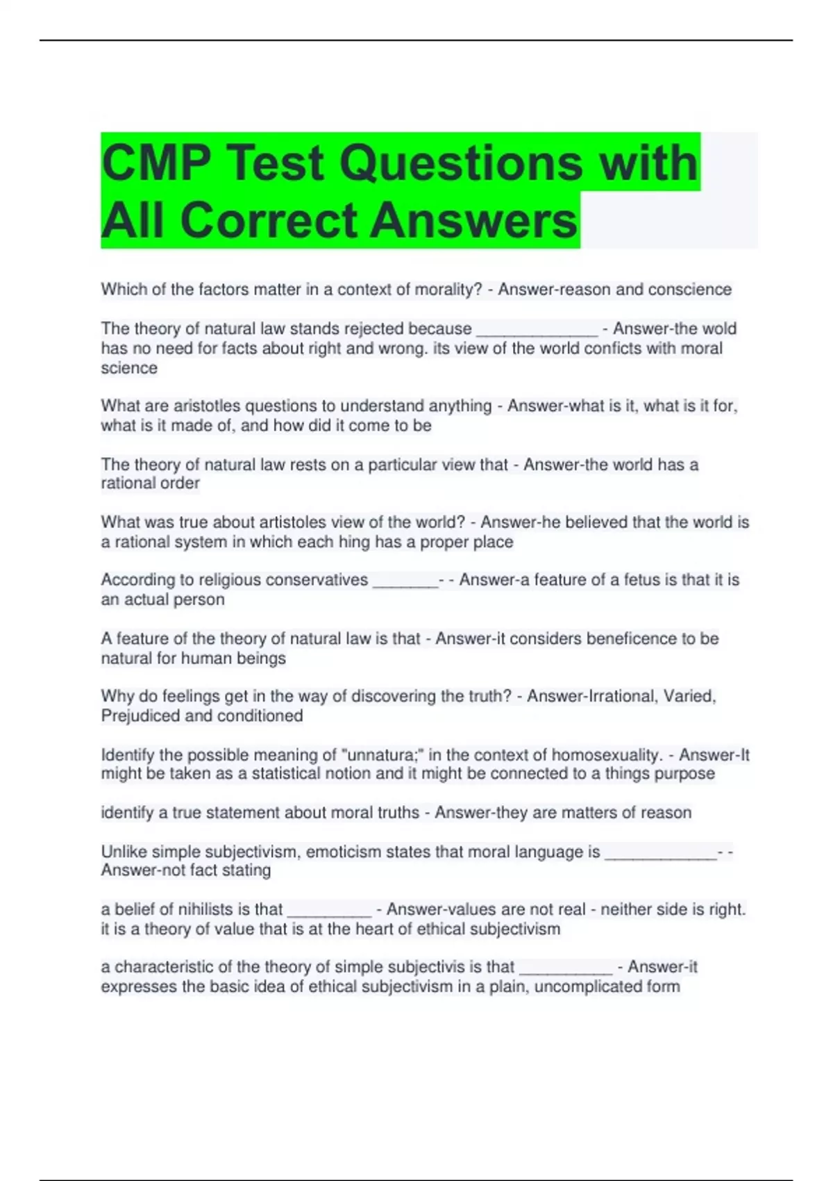 CMP 1 Midterm Exam Questions and Answers 2 Exam (elaborations) CMP EXAM 2024 Questions with Complete Solutions Graded A+ 3 Exam (elaborations) CMP FINAL TEST QUESTIONS WITH ALL CORRECT ANSWERS 4 Exam (elaborations) CMP Practice Test Questions and Answers Graded A+ 5 Exam (elaborations) CMP Practice Test Questions with Correct Answers 6 Exam (e