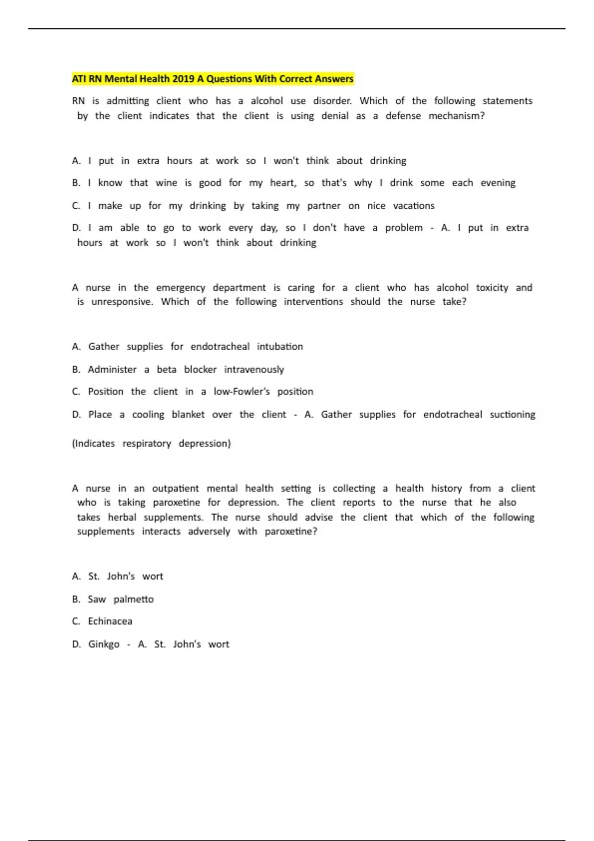 ATI RN Mental Health 2019 A