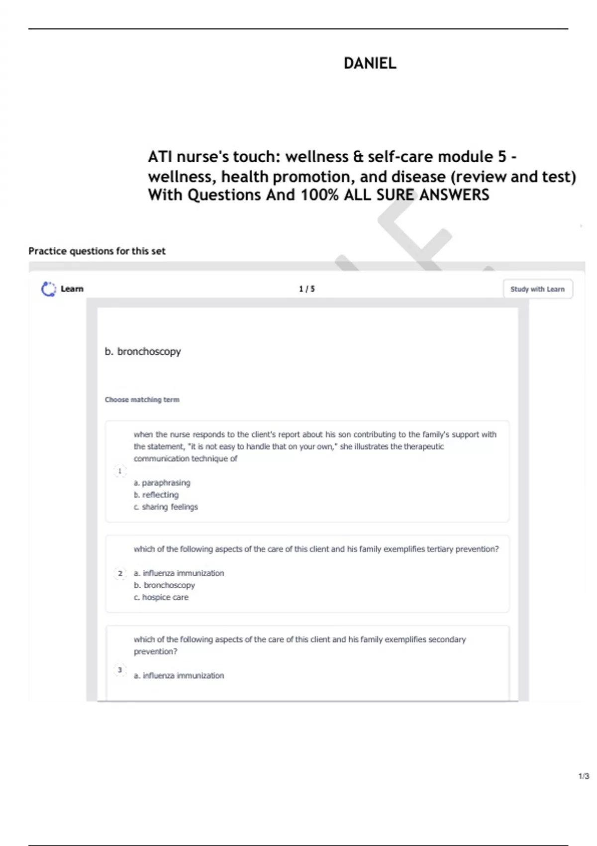 ATI nurse's touch: wellness & self-care module 5 - wellness, health promotion, and disease (review and test) With Questions And 100% ALL SURE ANSWERS