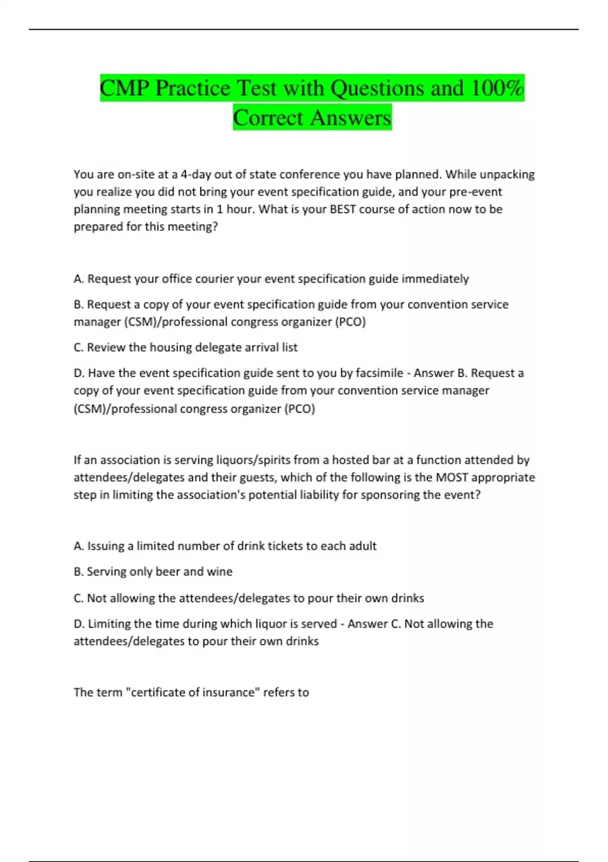 CMP Practice Test with Questions and 100% Correct Answers