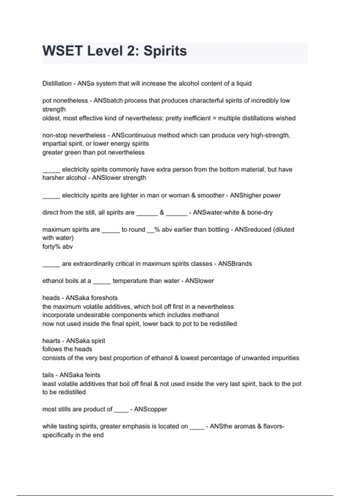 WSET LEVEL 2 SPIRITS EXAM 2024/2025 | ACTUAL EXAM WITH QUESTIONS AND CORRECT DETAILED ANSWERS |ALREADY GRADED A+ (ALL BUNDLED HERE!!!)