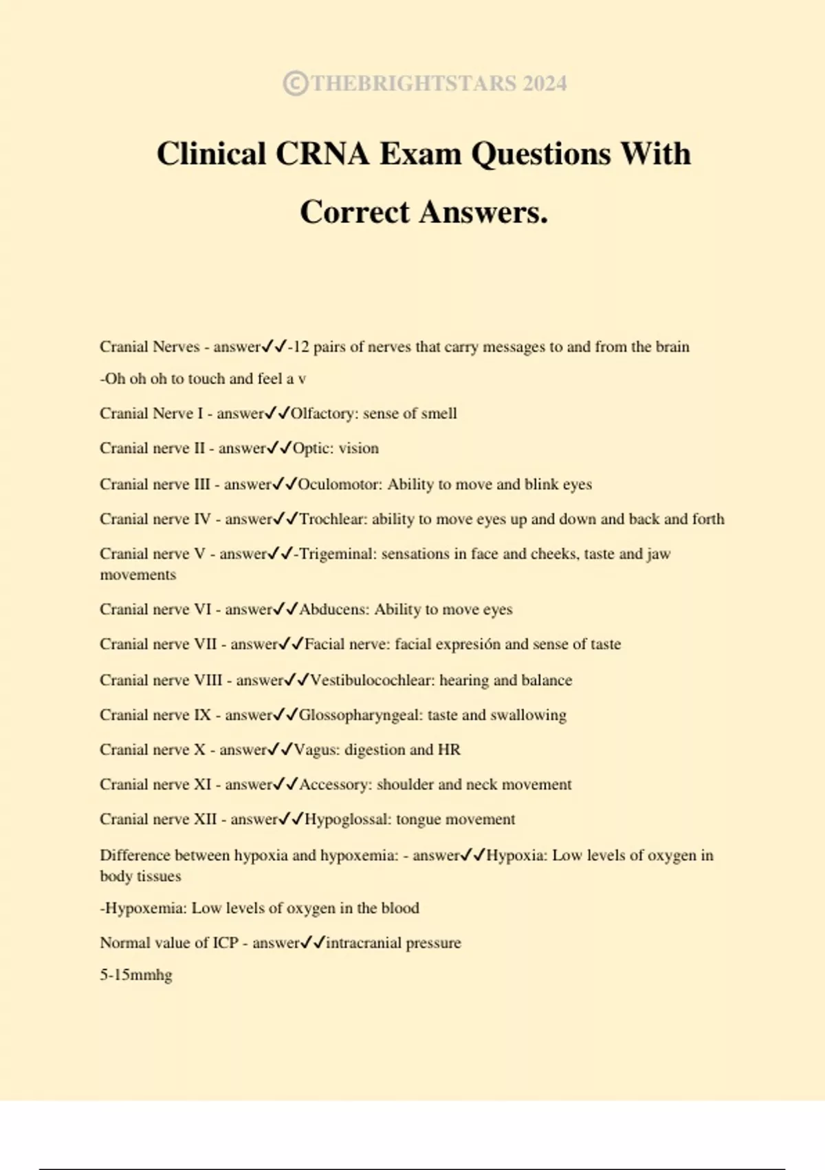 CRNA Boards Review Exam Questions With Correct Answers.