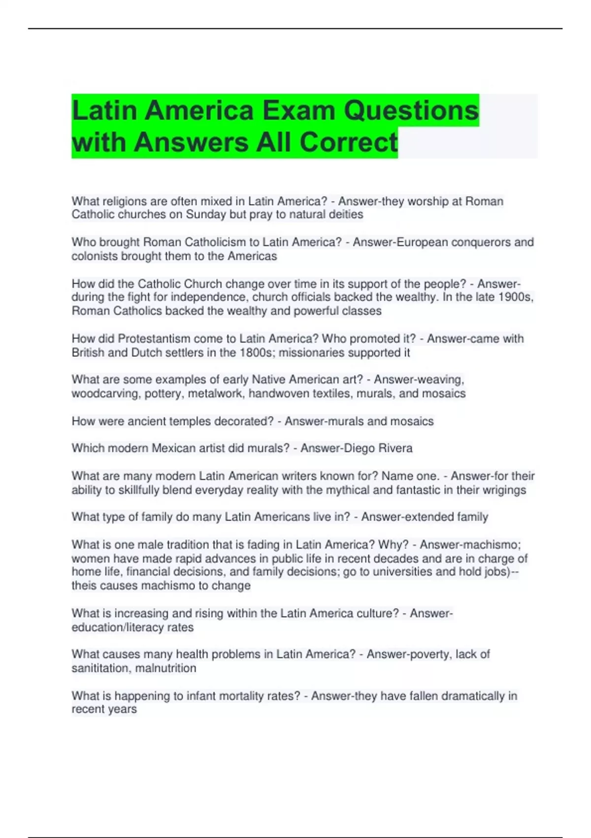 Latin America 2024 Exam Questions and Answers All Correct 2 Exam (elaborations) Latin America Exam Questions and Revised Answers All Correct 3 Exam (elaborations) Latin America Exam Questions with Answers All Correct 4 Exam (elaborations) Latin America Practice Exam Questions and Answers All Correct 5 Exam (elaborations) Latin America Study Gui