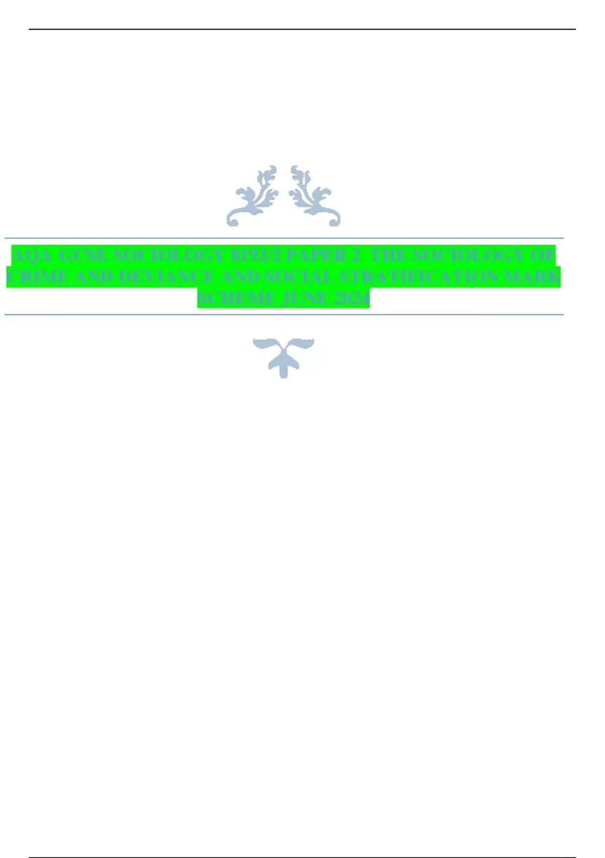 AQA GCSE SOCIOLOGY 8192/2 PAPER 2 THE SOCIOLOGY OF CRIME AND DEVIANCE AND SOCIAL STRATIFICATION MARK SCHEME JUNE 2024