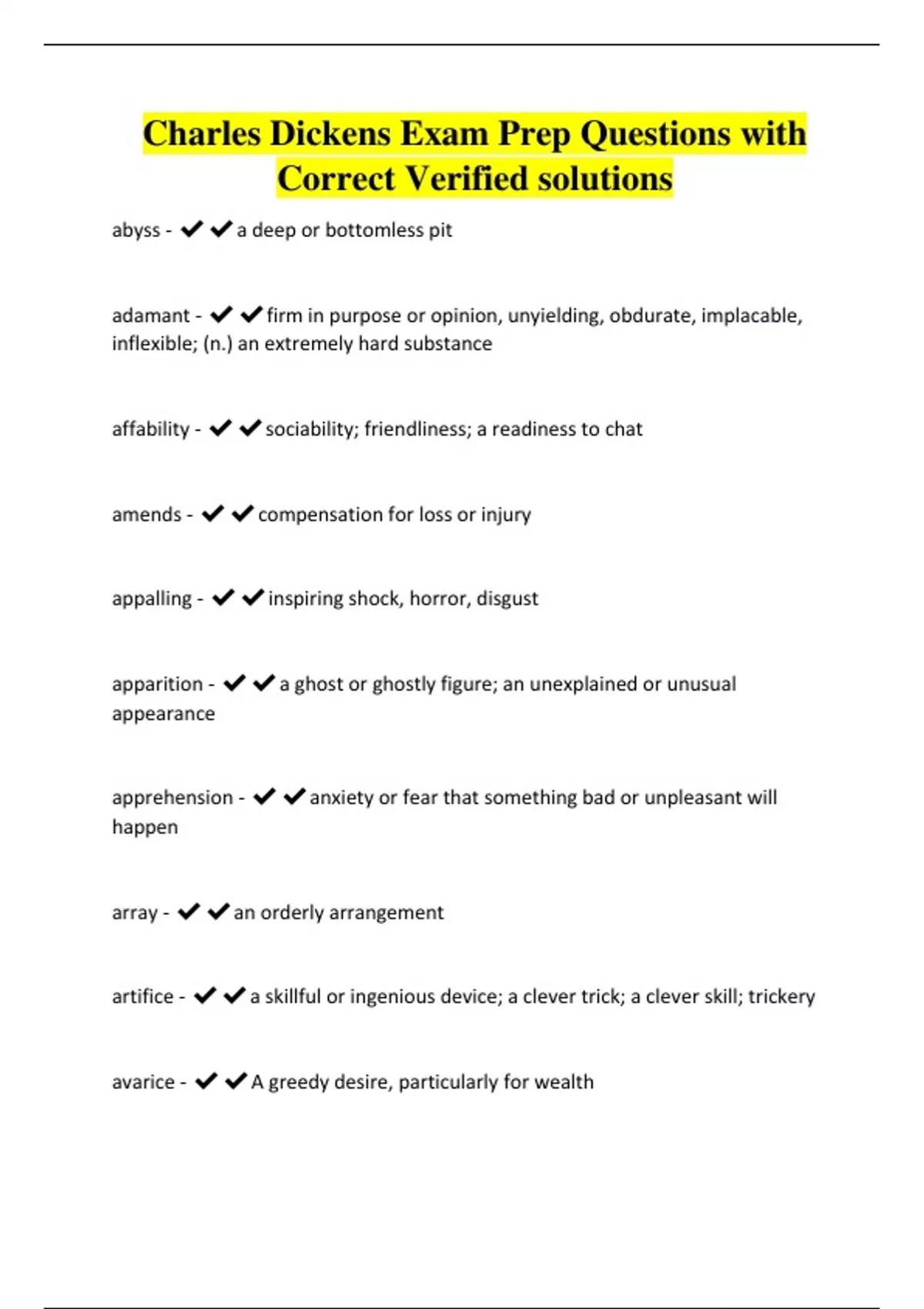 Charles Dickens Exam Prep Questions with Correct Verified solutions