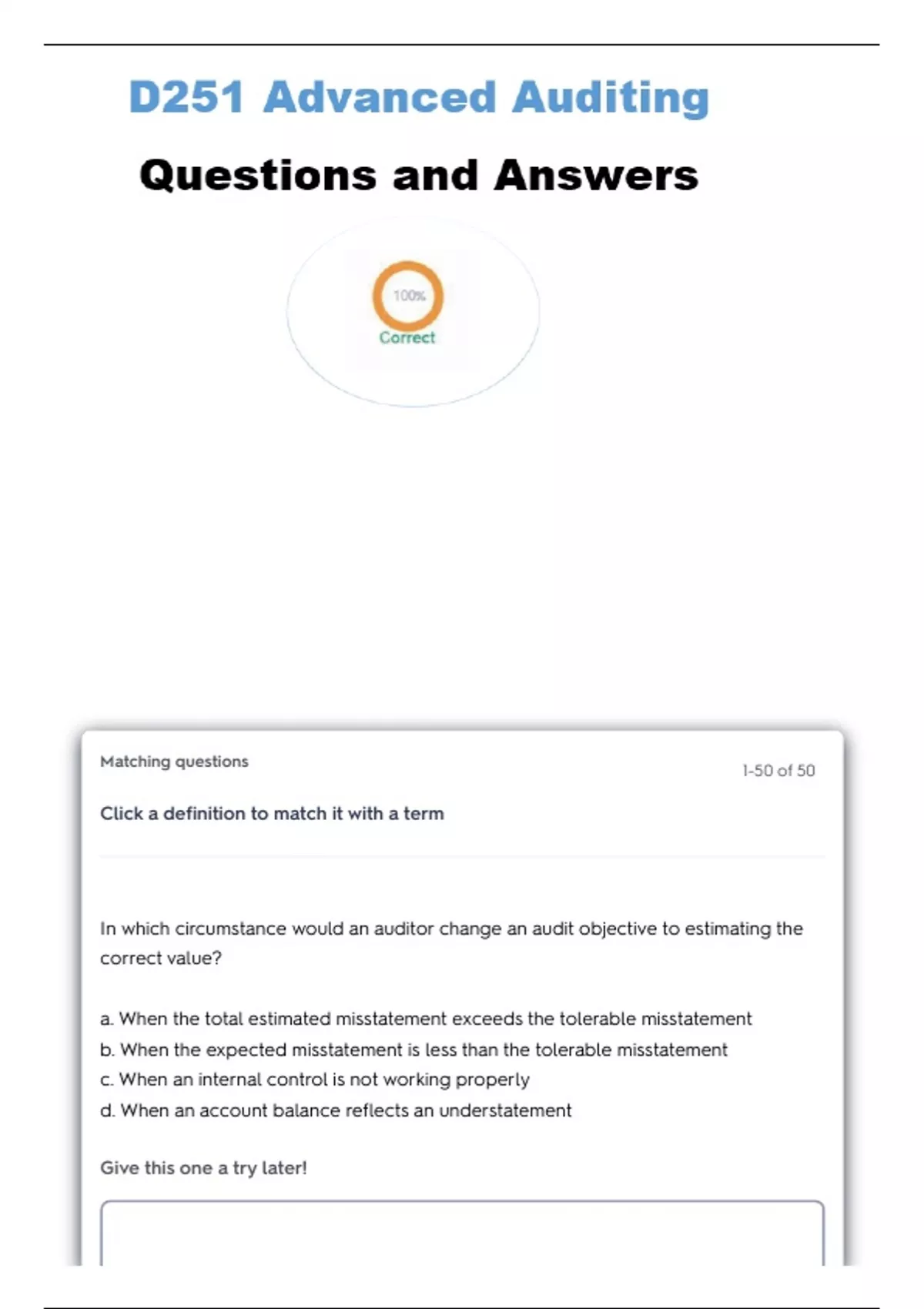 WGU D251 ADVANCED AUDITING EXAMS BUNDLE WITH COMPLETE SOLUTIONS