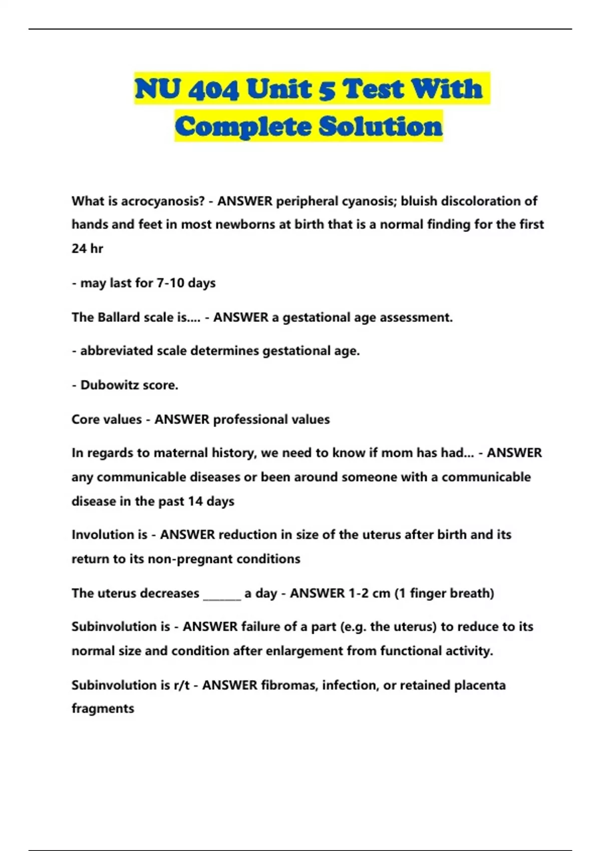 NU 404 BUNDLED EXAMS WITH SOLUTION