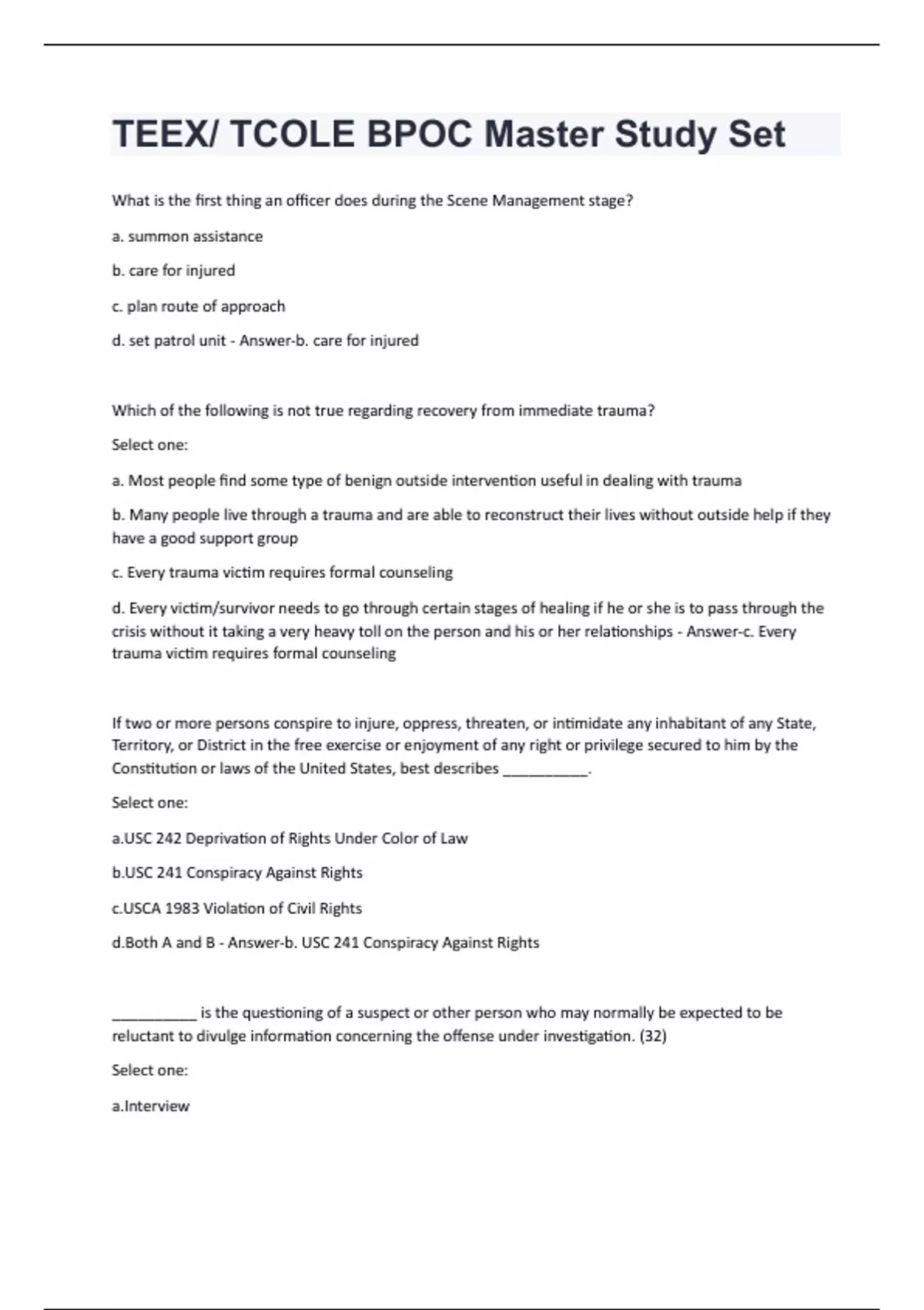 TEEX/ TCOLE BPOC Master Study Set Questions And Answers