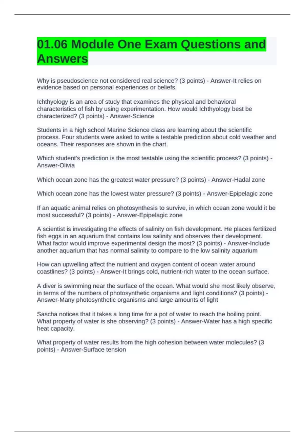 Exam (elaborations) Marine Science Final Exam Questions with Verified Answers Exam (elaborations) Marine Science Final Exam Questions with Verified Answers Exam (elaborations) Marine Science Final Exam Review Questions and Answers Latest Update Exam (elaborations) Marine Science Final Exam Review Questions with Latest Update Exam (elaborat