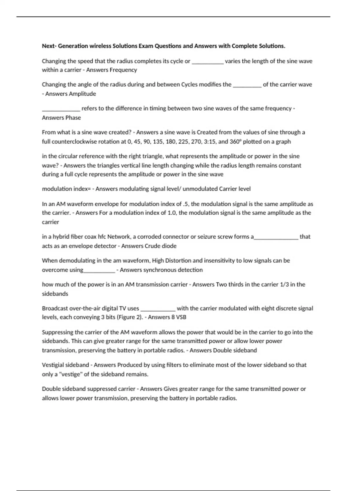 Next- Generation wireless Solutions Exam Questions and Answers with Complete Solutions.