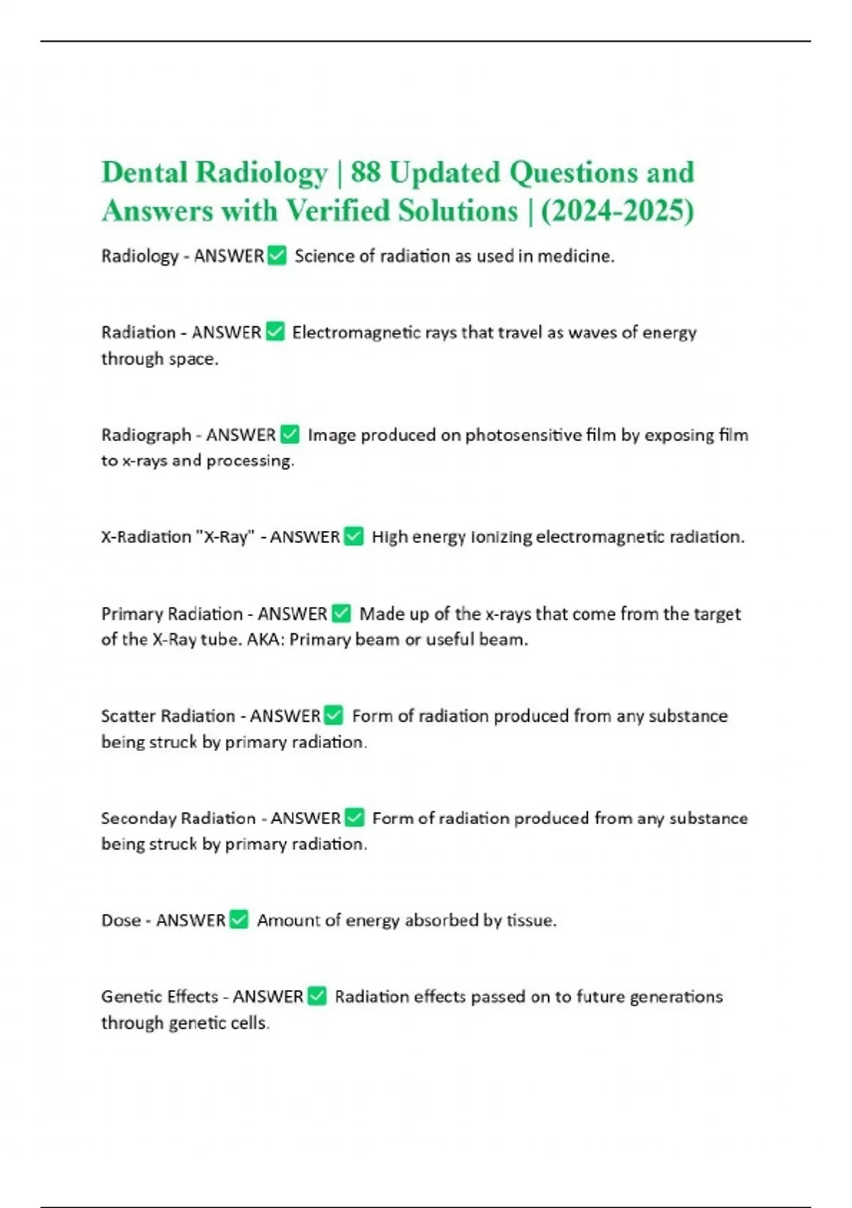 DENTAL RADIOLOGY CERTIFICATION TEST ACTUAL QUESTIONS AND ANSWERS VERIFIED BY EXPERT 100% CORRECT | UPDATED