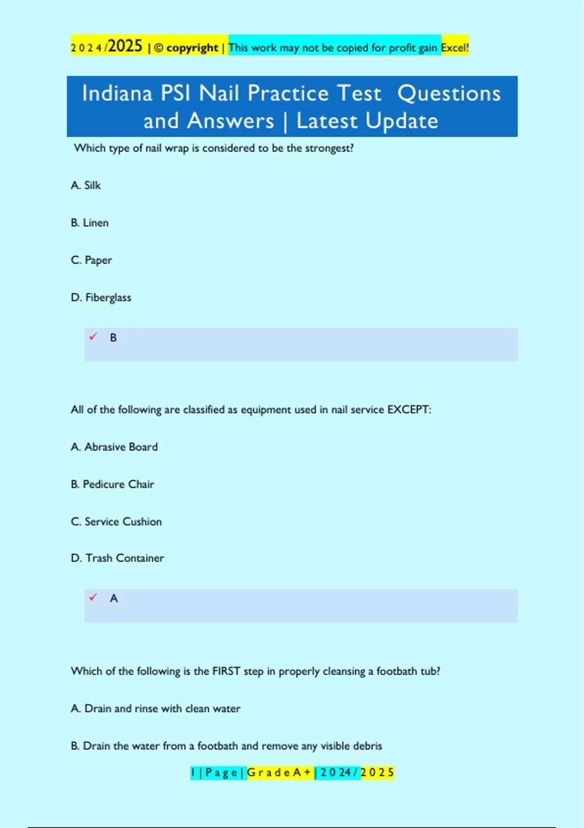 Indiana PSI Nail Practice Test Questions and Answers | Latest Update