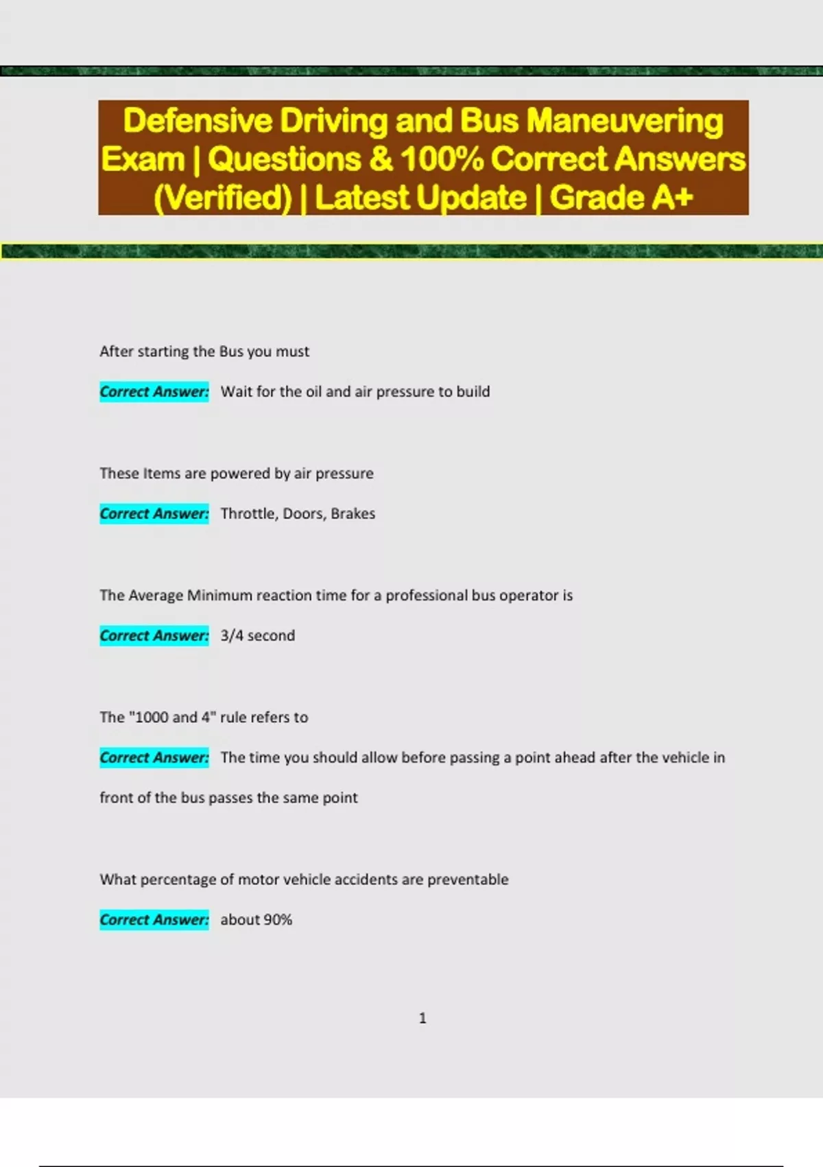 Defensive Driving School Questions & 100% Correct Answers- Latest Test | Graded A+ | Passed