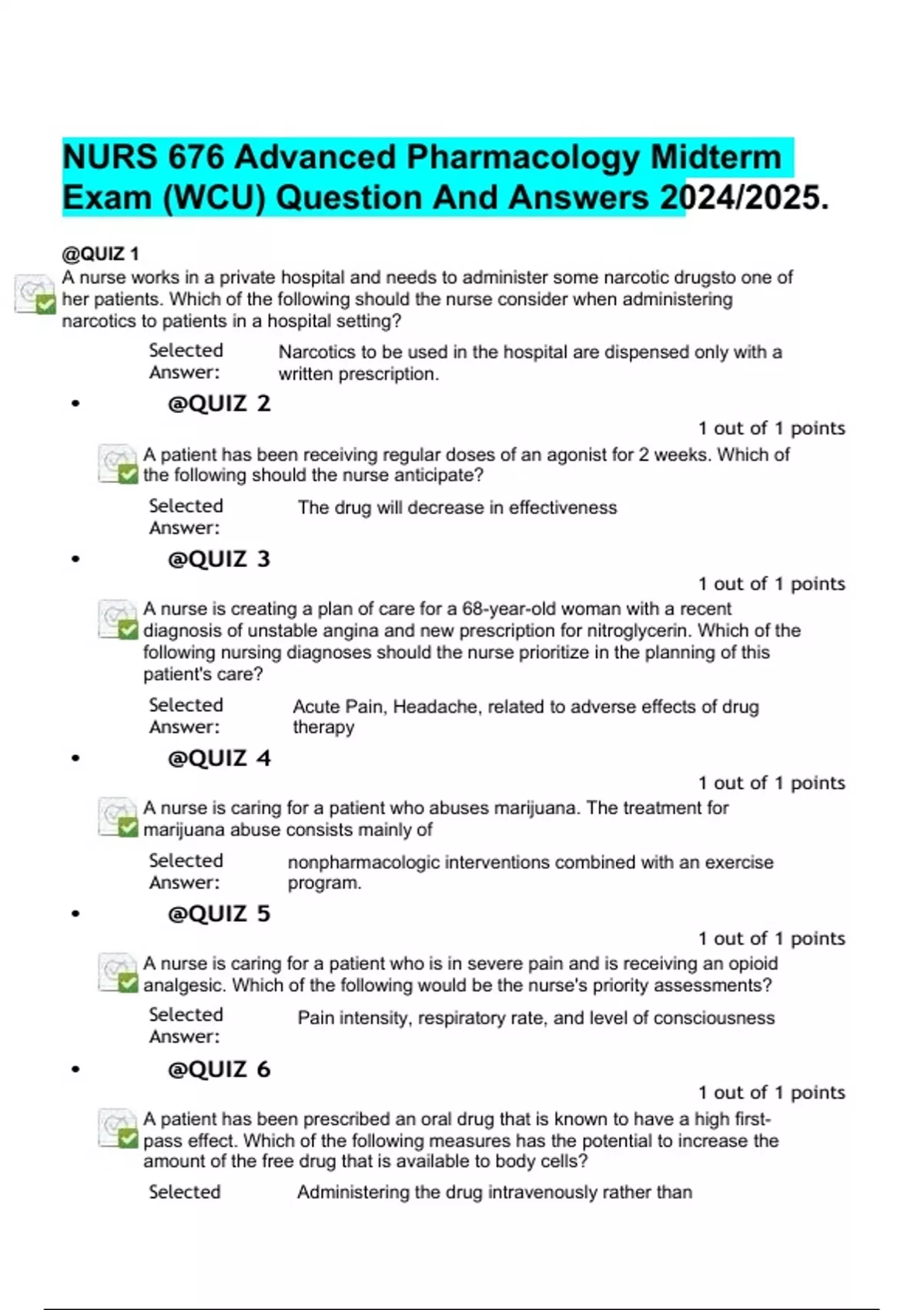NURS 676 Advanced Pharmacology Midterm Exam Question And Answers 2024/2025 & NURS 676 FINAL EXAM Questions and Answers Latest Updated 2024/2025 (100% Correct)