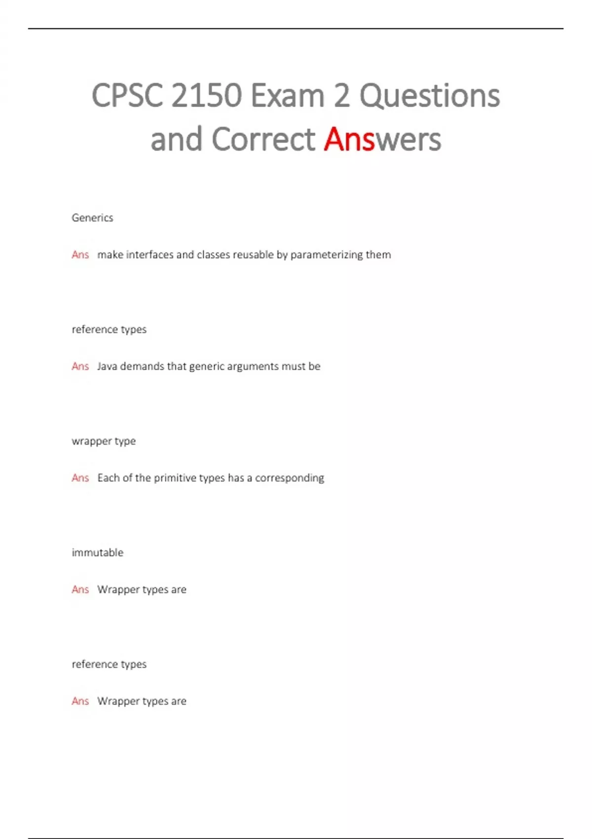 CPSC 2150 Exam 2 Questions and Correct Answers