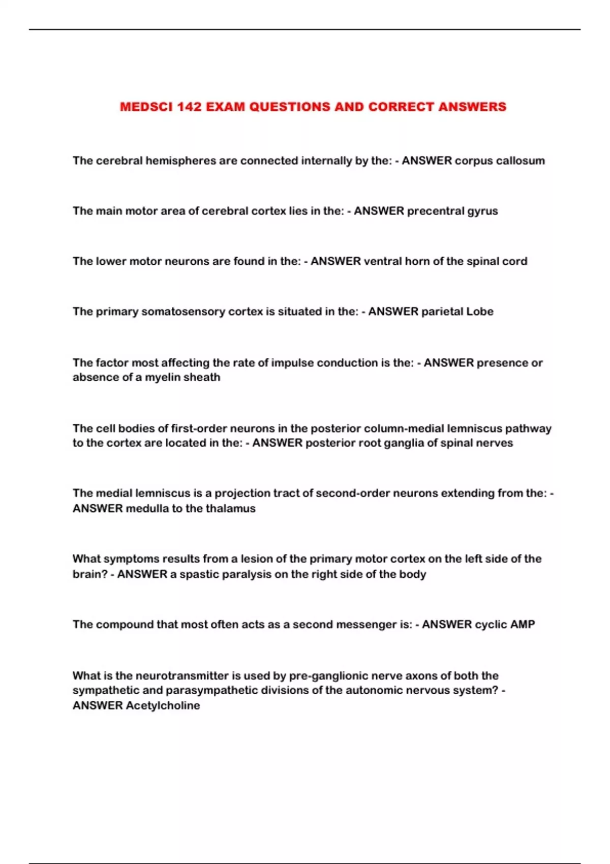 Medsci 142-Neurons Exam Questions And Correct Answers