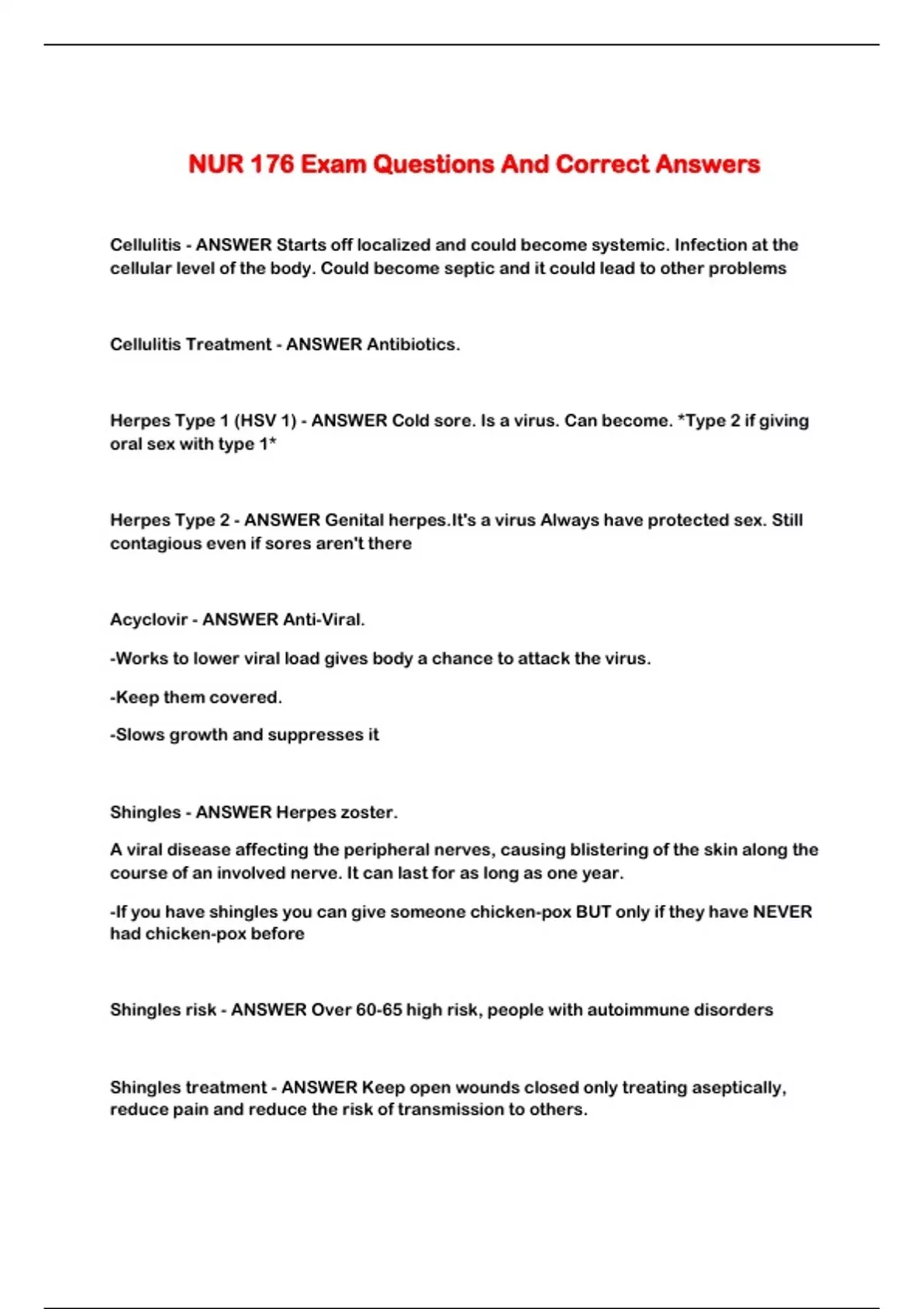 NUR 176 Exam Questions And Correct Answers