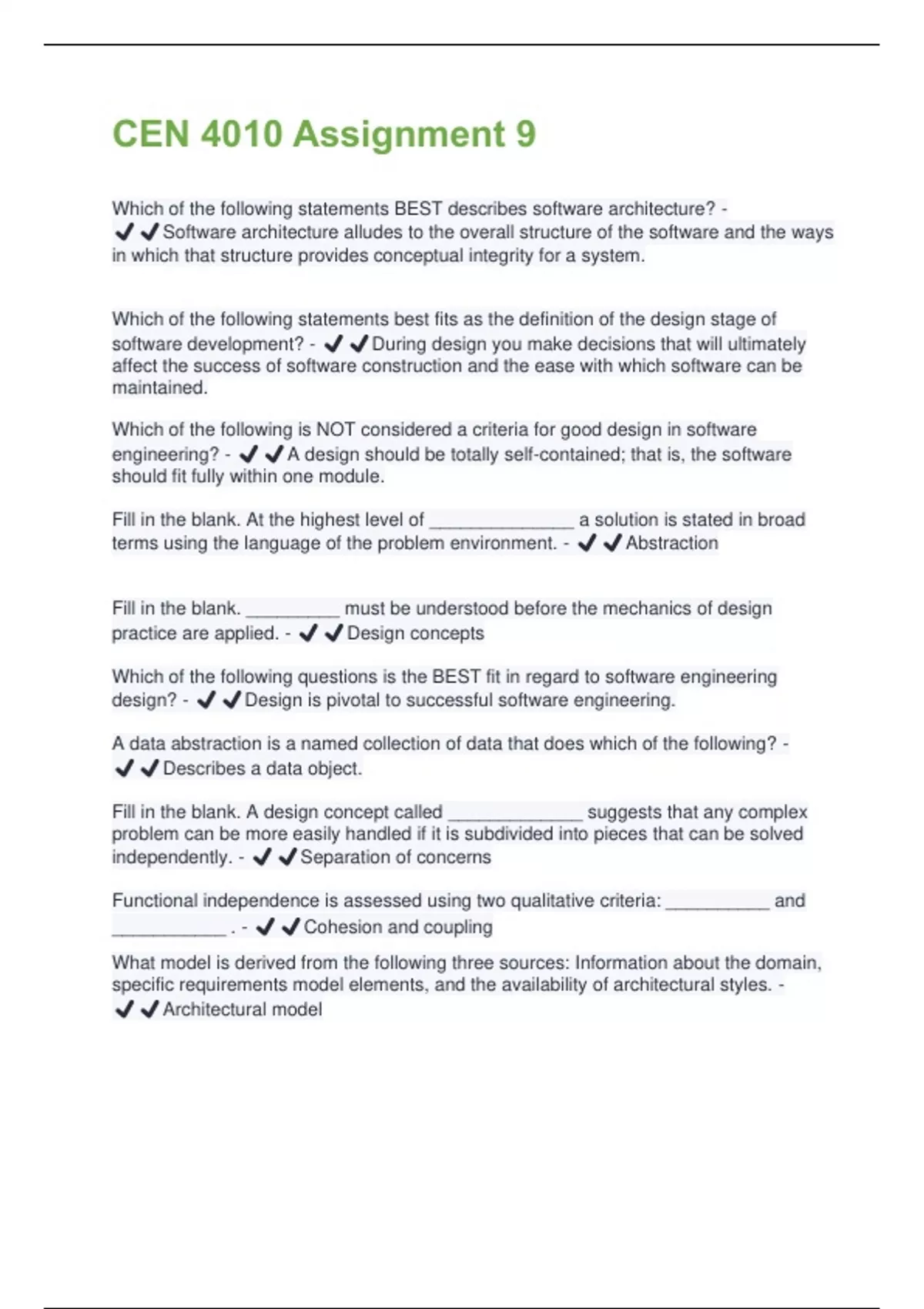 CEN 4010 Assignment 9 Questions And Answers Latest Updates