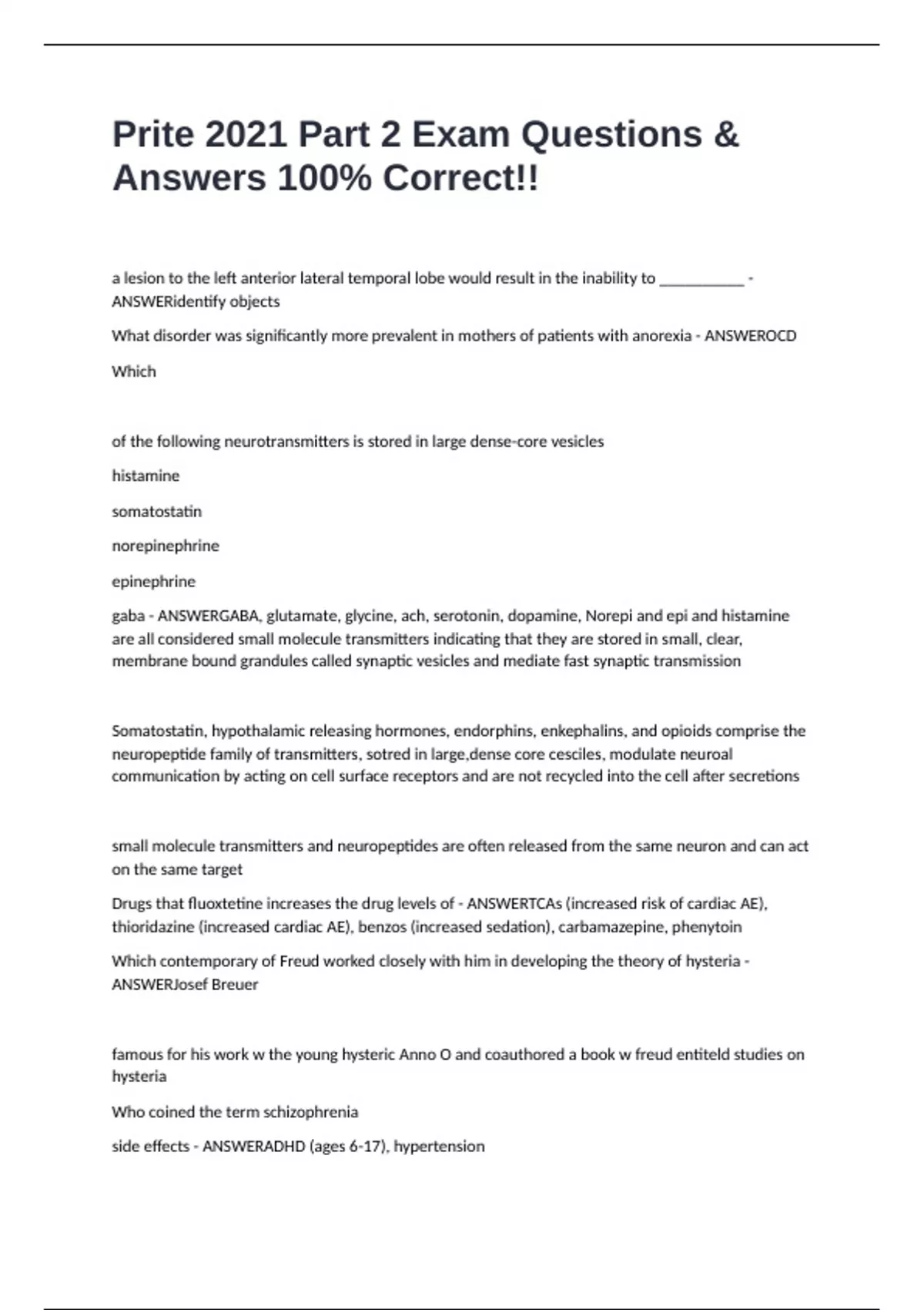 PRITE Psychiatric Evaluation and Psychiatric Testing Exam 100% Correct!!