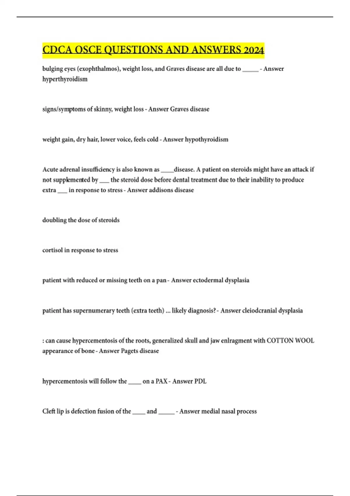 CDCA, ADEX, DSE, OSCE Exam questions (A+ GUARANTEED)