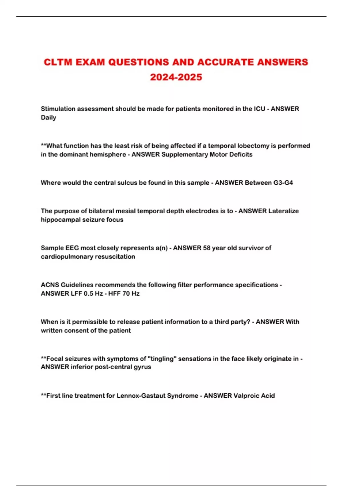 EEG CLTM EXAM QUESTIONS AND 100% CORRECT ANSWERS
